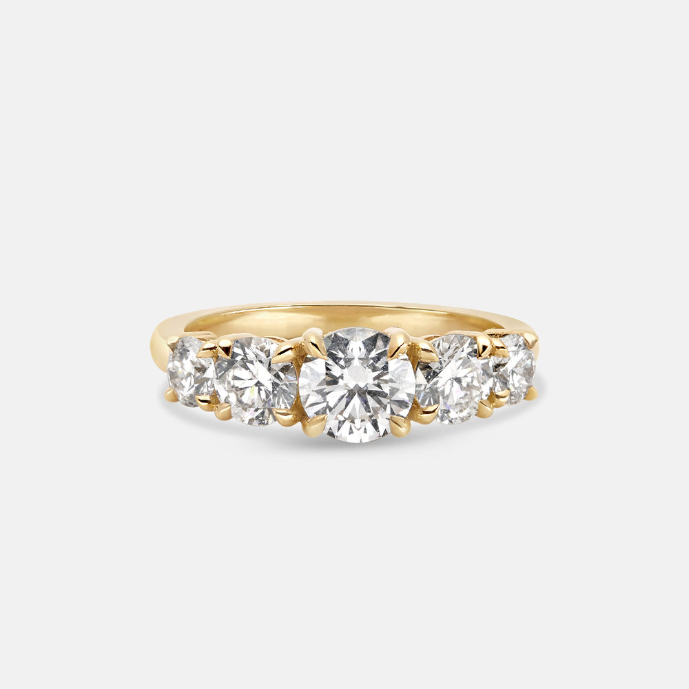 Lead times of approximately 3β8 weeks depending on bespoke options β contact us to confirm the exact lead time; this reflects the fact that each ring is built to your specification rather than drawn from stock. Finger size, preferred metal tone, and even subtle details like how prominently the Round stones sit above the band in 14K White Gold can all be personalised.