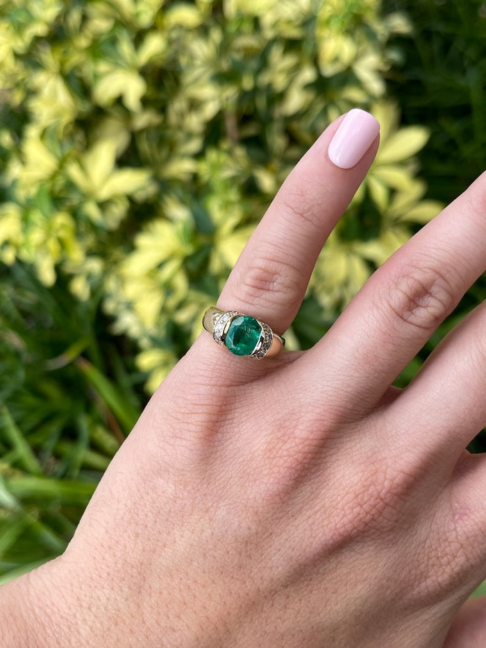 The carat weight of approximately 1.05 carats has been deliberately focused into the area that matters most: the top of the finger. This concentration of Emerald Green light allows the ring to photograph powerfully and to hold its own beside serious timepieces and bracelets.