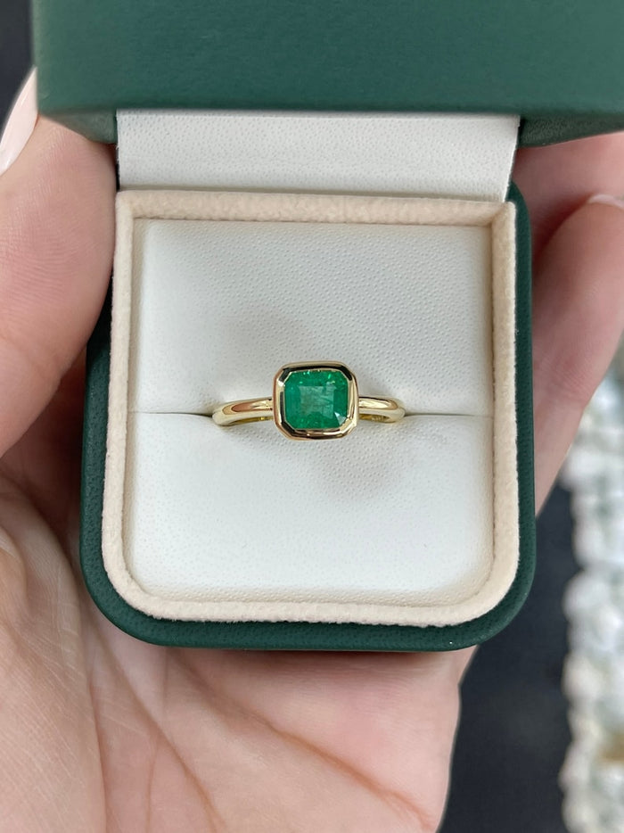 • Brian Urlacher Β· A lifetime of competition teaches respect for honest materials; this 1.20ct 18k gold natural emerald cut solitaire bezel engagement ring repays that respect with authentic emerald cut craftsmanship and unforced emerald green fire.