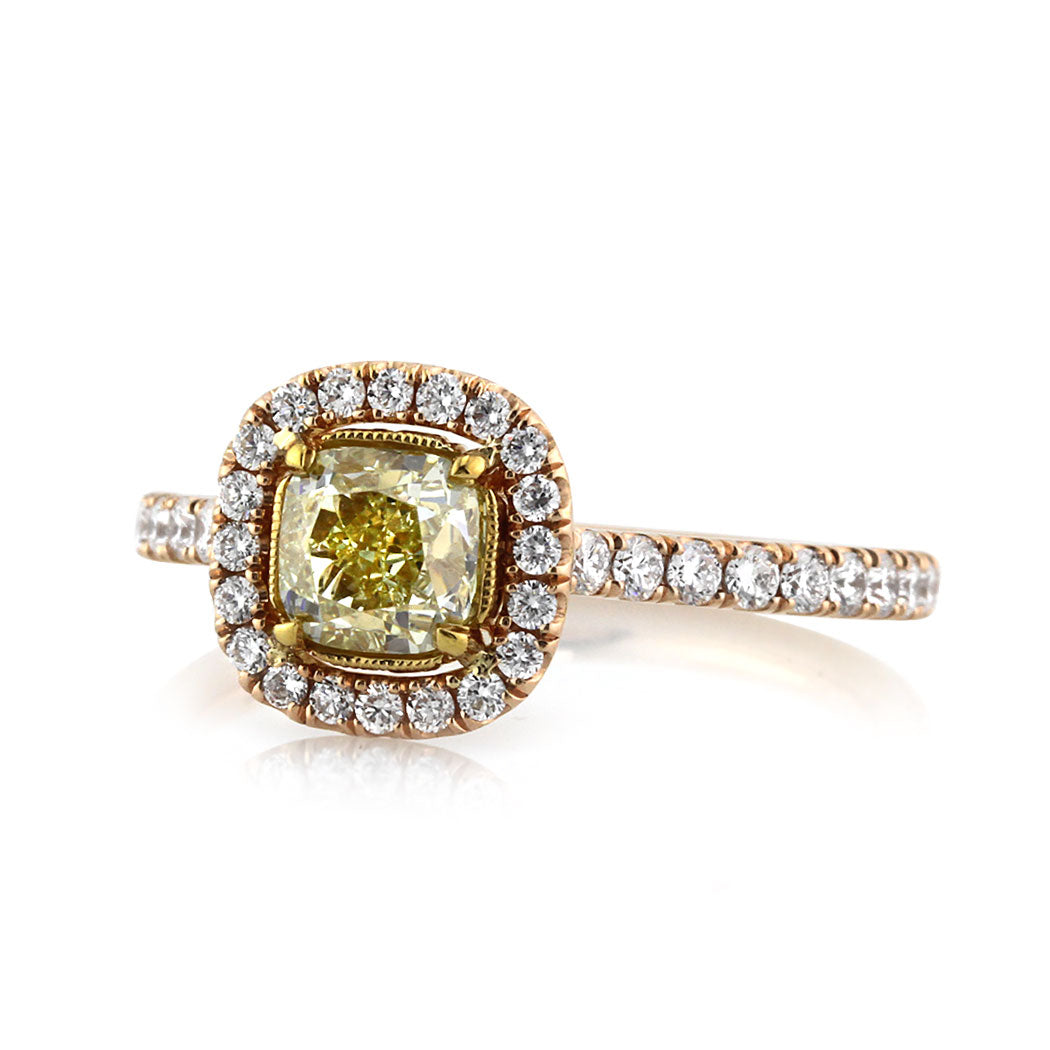 1.5 Carat Cushion Diamond Ring | Fancy Yellow | 14K White Gold | Sunlit Royal Radiance