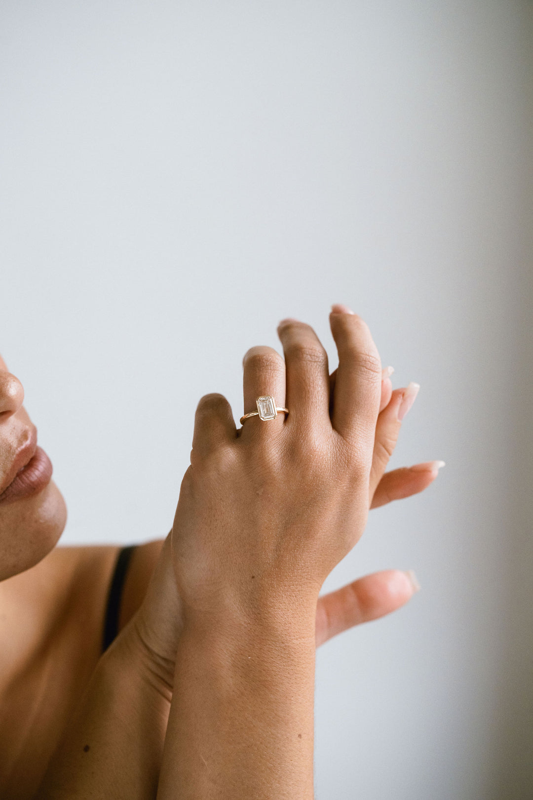 Subtle options – from how tightly the ring rests at the base of the finger, to how the Emerald Cut line presents when the hand is relaxed – can all be discussed in detail, resulting in a piece that feels quietly custom-built rather than merely selected.