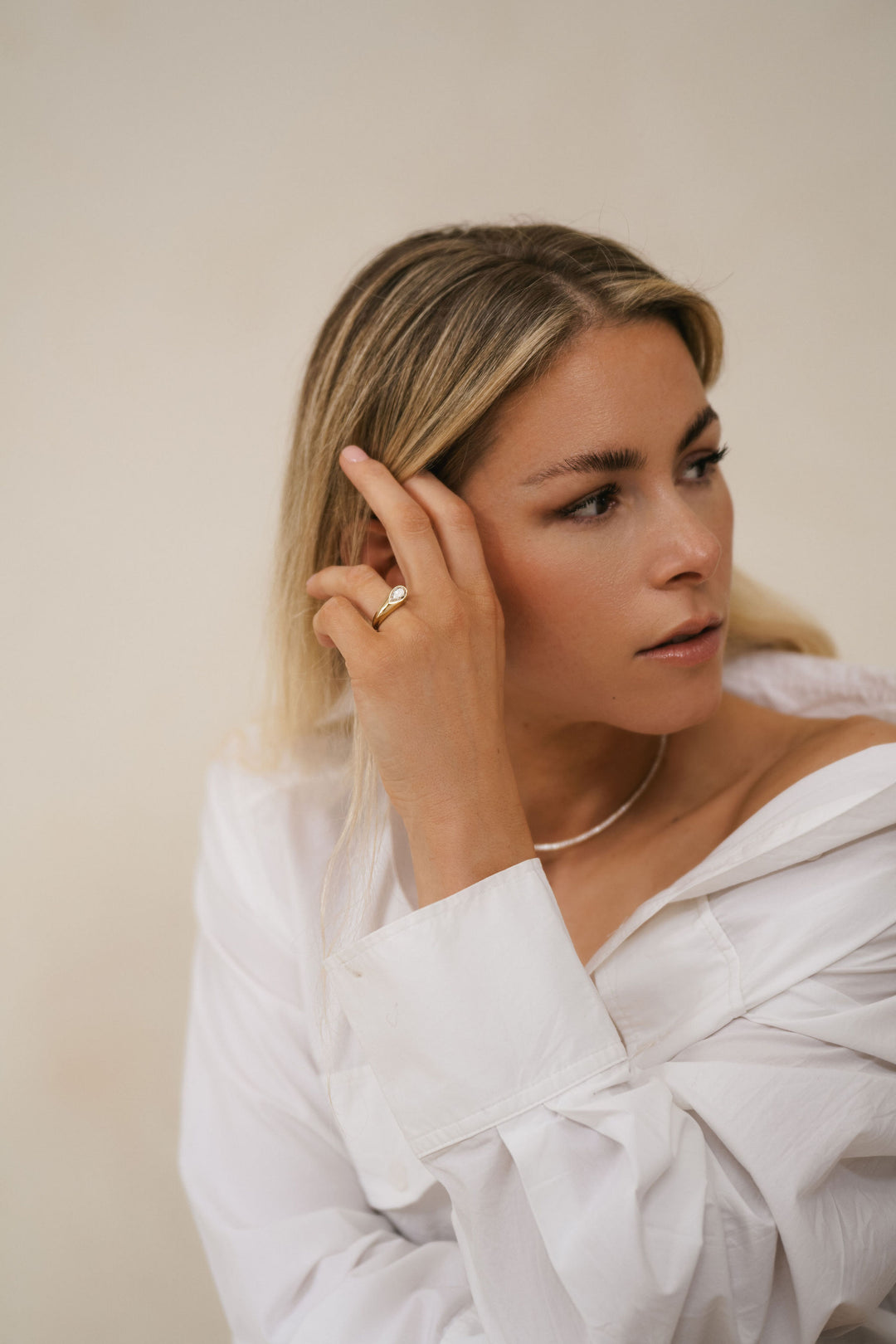 Subtle options β from how tightly the ring rests at the base of the finger, to how the Pear line presents when the hand is relaxed β can all be discussed in detail, resulting in a piece that feels quietly custom-built rather than merely selected.