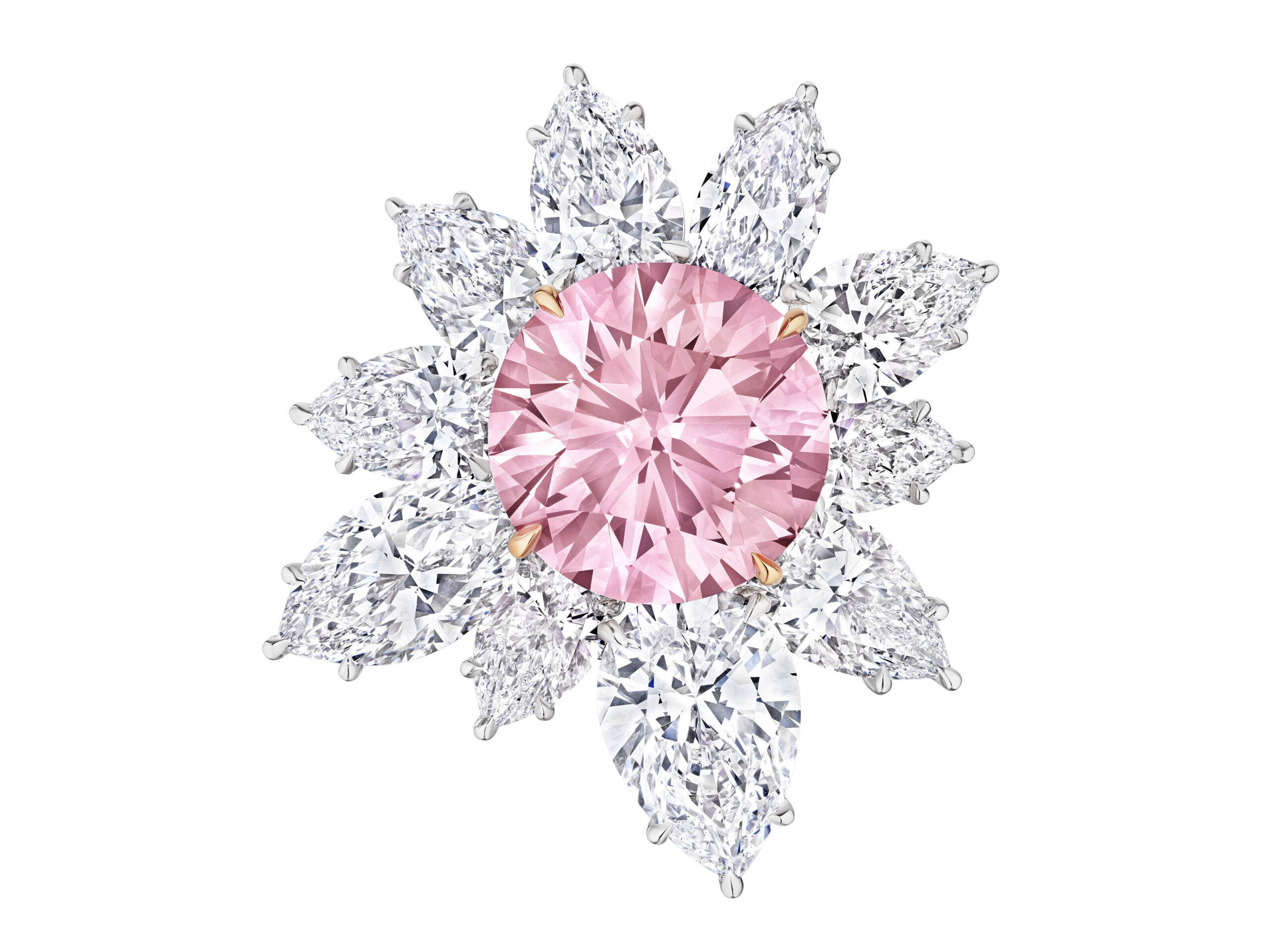 The visual language of the fancy colour diamonds are one of understatement: a fluent, even sparkle across the top, no distracting inclusions to the naked eye and a colour band that feels modern, clean and flattering in every photograph.