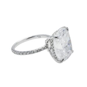 Viewed from any angle, the approximately 10.01 carats of Emerald Green Emerald cut diamonds create a wide field of brilliance across the finger. The carat weight is generous enough to be unmistakable in a room, yet balanced so that the ring never feels overpowering.