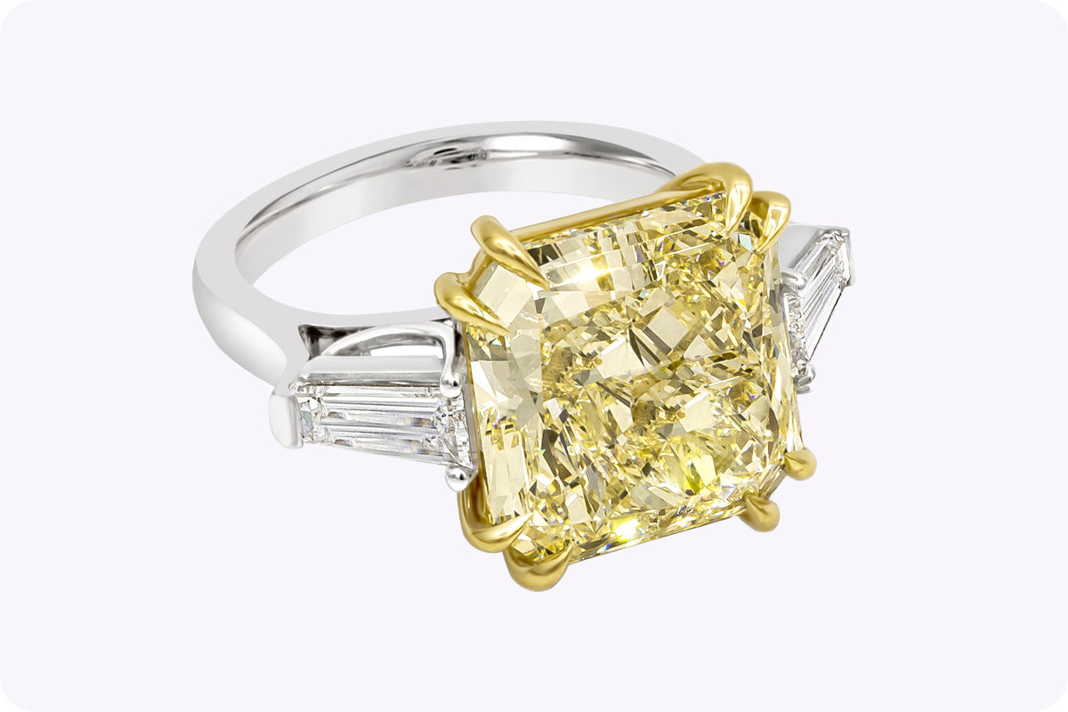 10.11 Carat Radiant Diamond Ring | Fancy Yellow | 18K Gold | Sunlit Royal Radiance