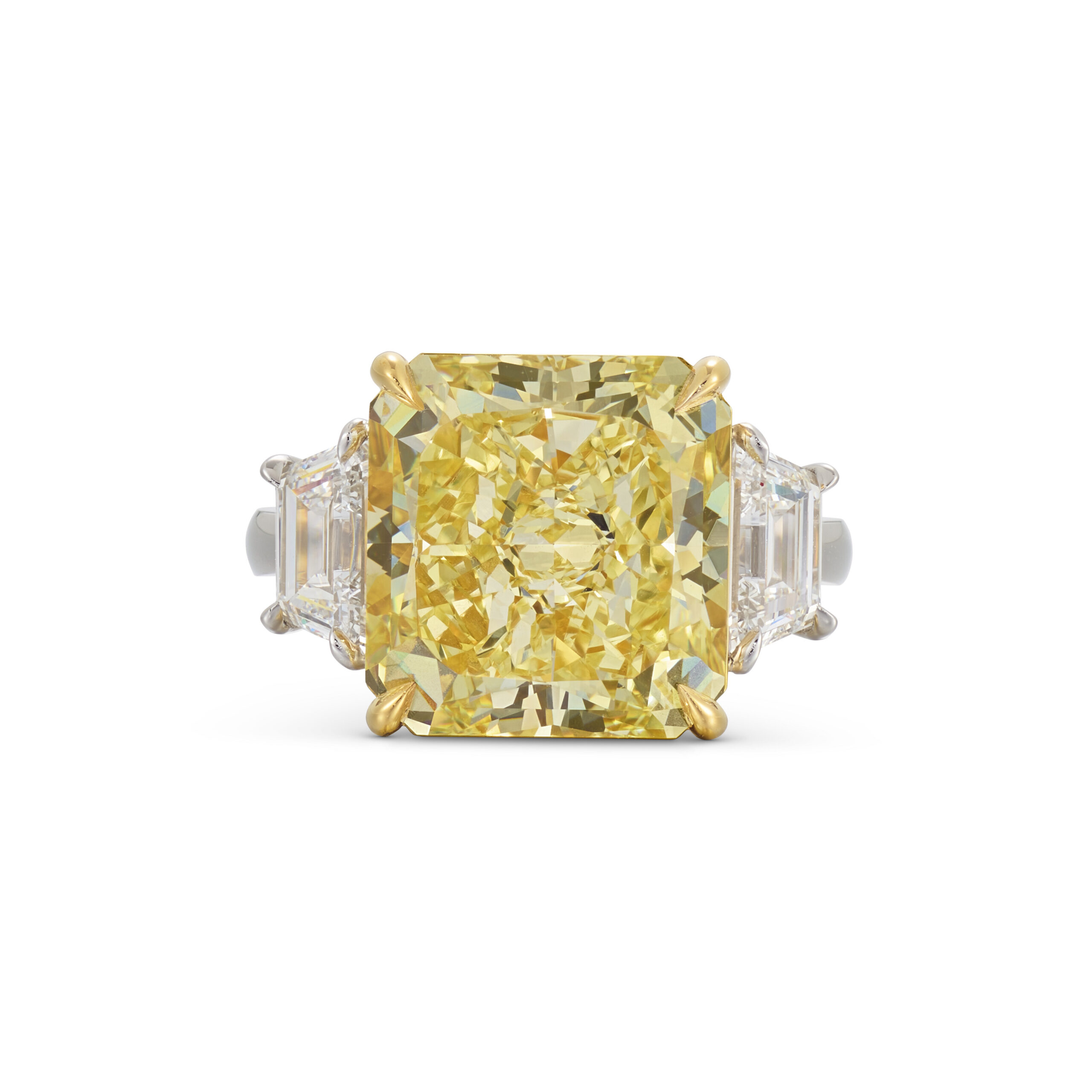 Celebrating the powerful allure of Fancy Yellow diamonds, this Legacy ring showcases approximately 10.22 carats of diamonds in a luminous high jewelry silhouette.