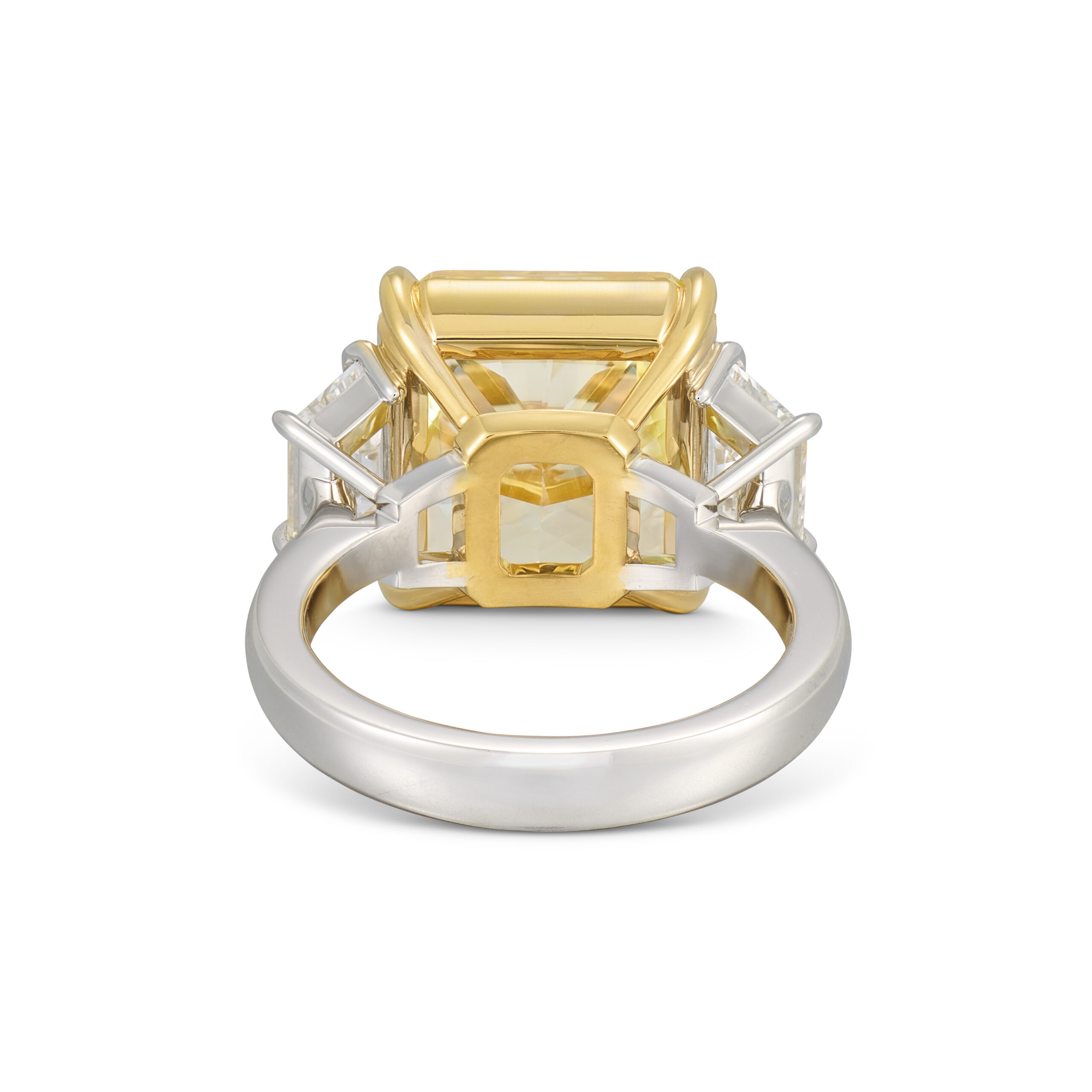 The interplay of 10.22 carats and Fancy Yellow produces a ring that reads as a serious carat investment on the hand. At the same time, the controlled height and footprint ensure it sits securely and comfortably through a full day or evening.
