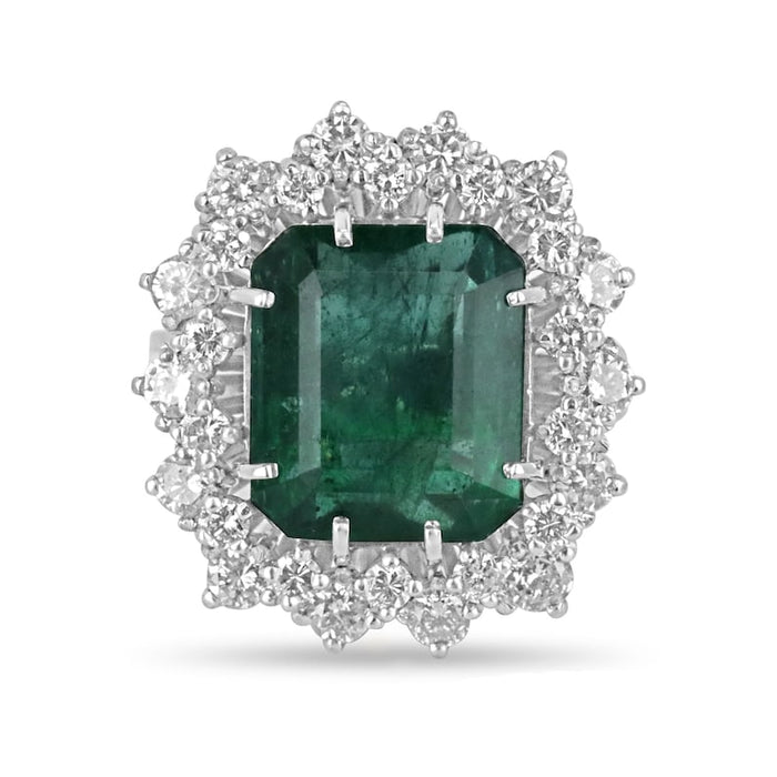 10.4 Carat Emerald Halo Diamond Ring | 14K White Gold