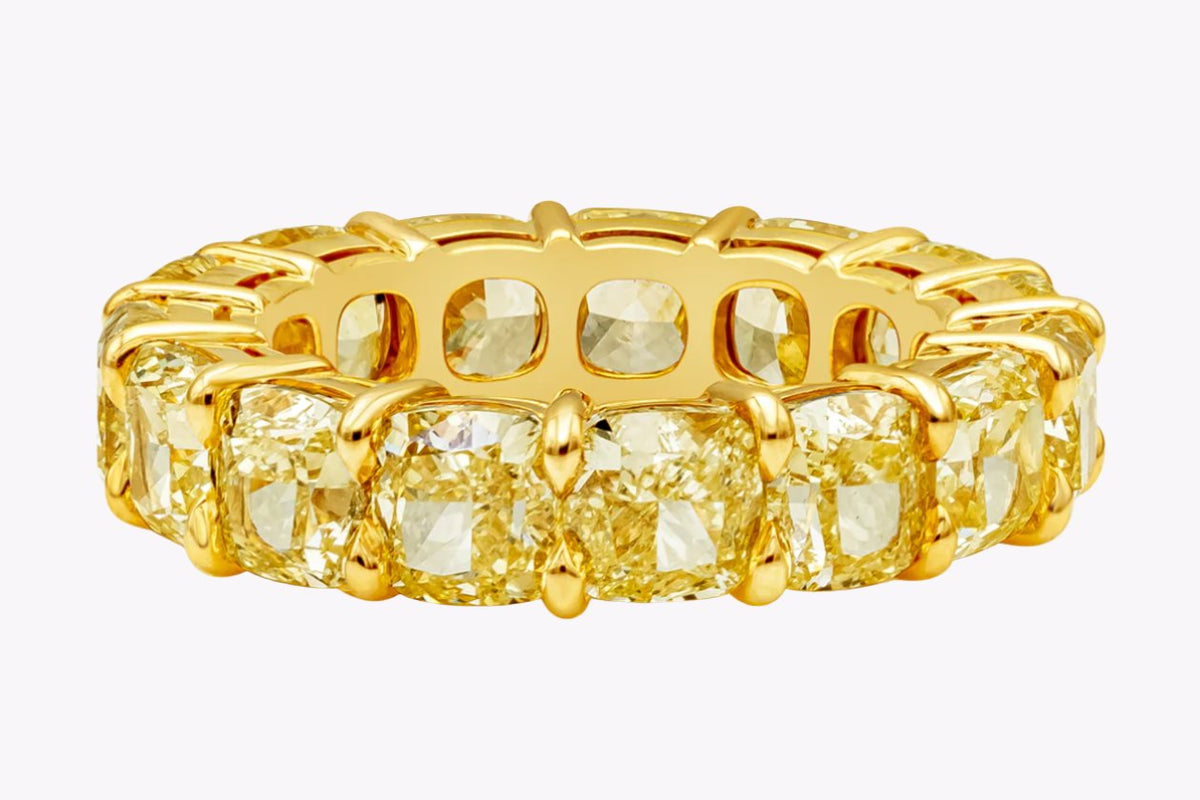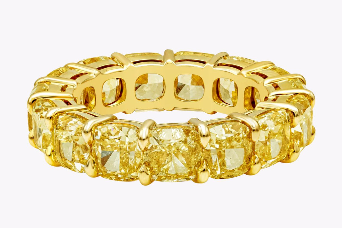 • Payal Kadakia Β· Clarity of thought is mirrored by clarity of design; the ordered round facets and clear fancy yellow brilliance of this $27500 gia certified 10.83 carats total yellow diamond eternity wedding band reflect a similar mindset.