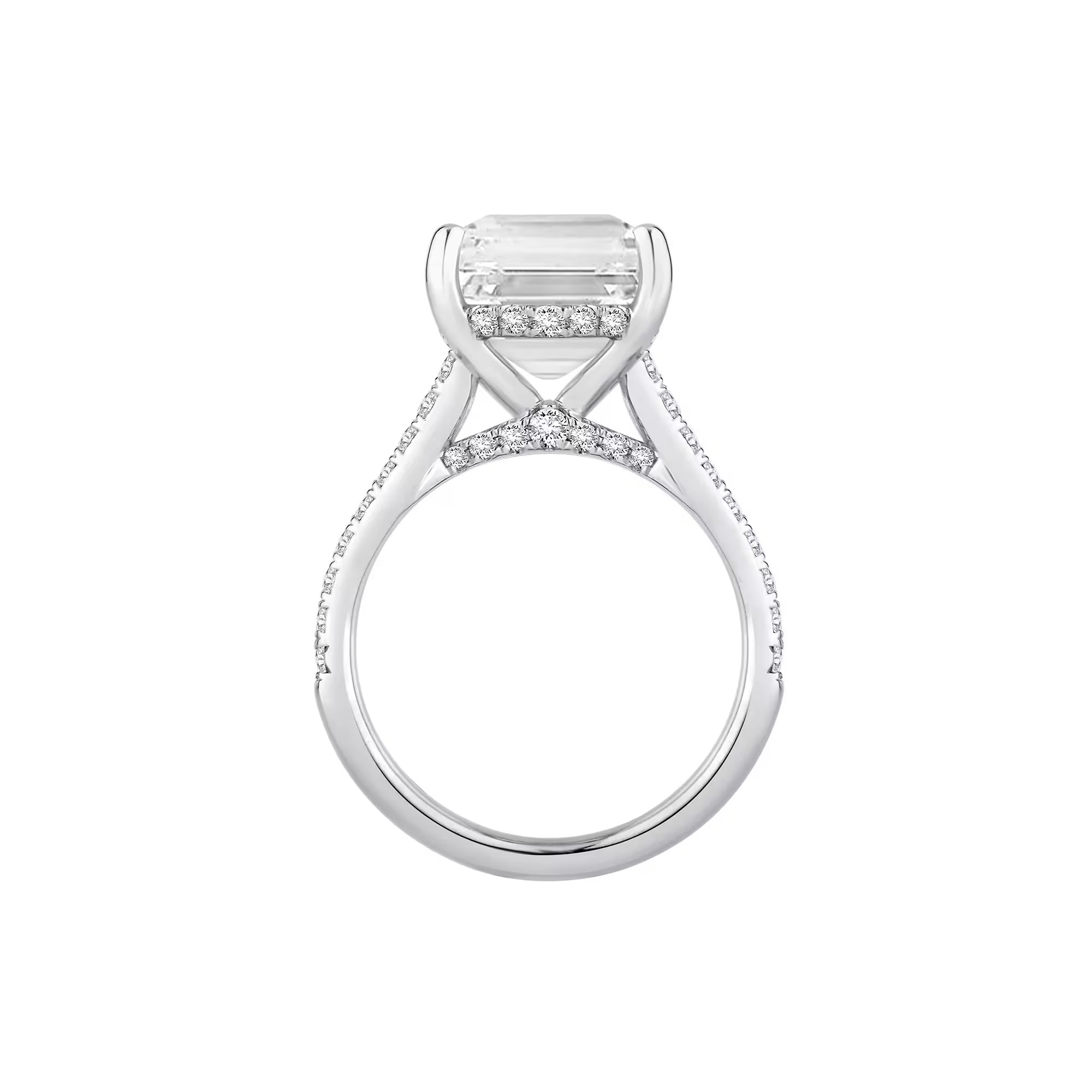 Inspired by the great high jewelry rings seen on red carpets and at state dinners, this Legacy creation showcases approximately 10 carats of Brilliant White Cushion cut diamonds in a deliberately timeless profile.