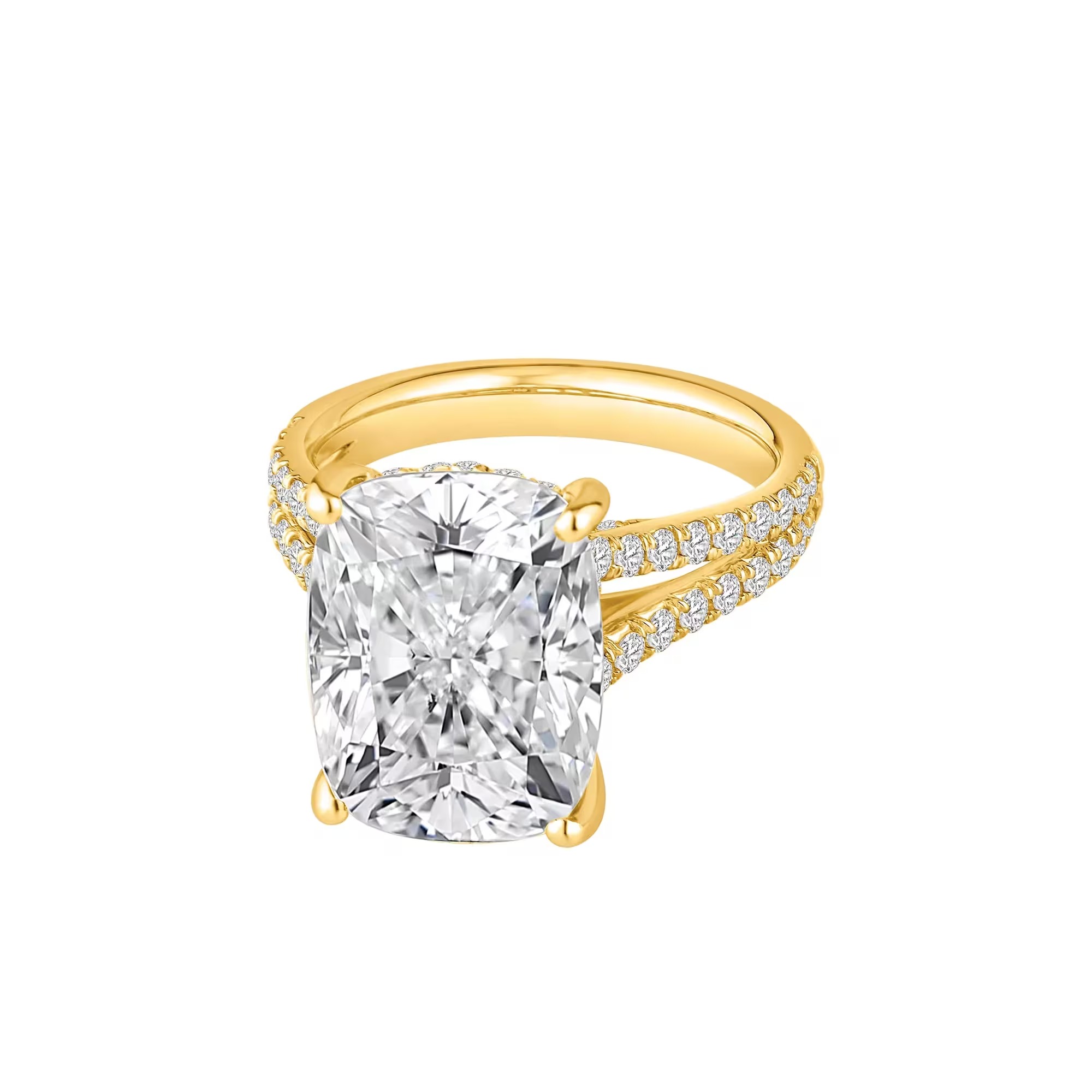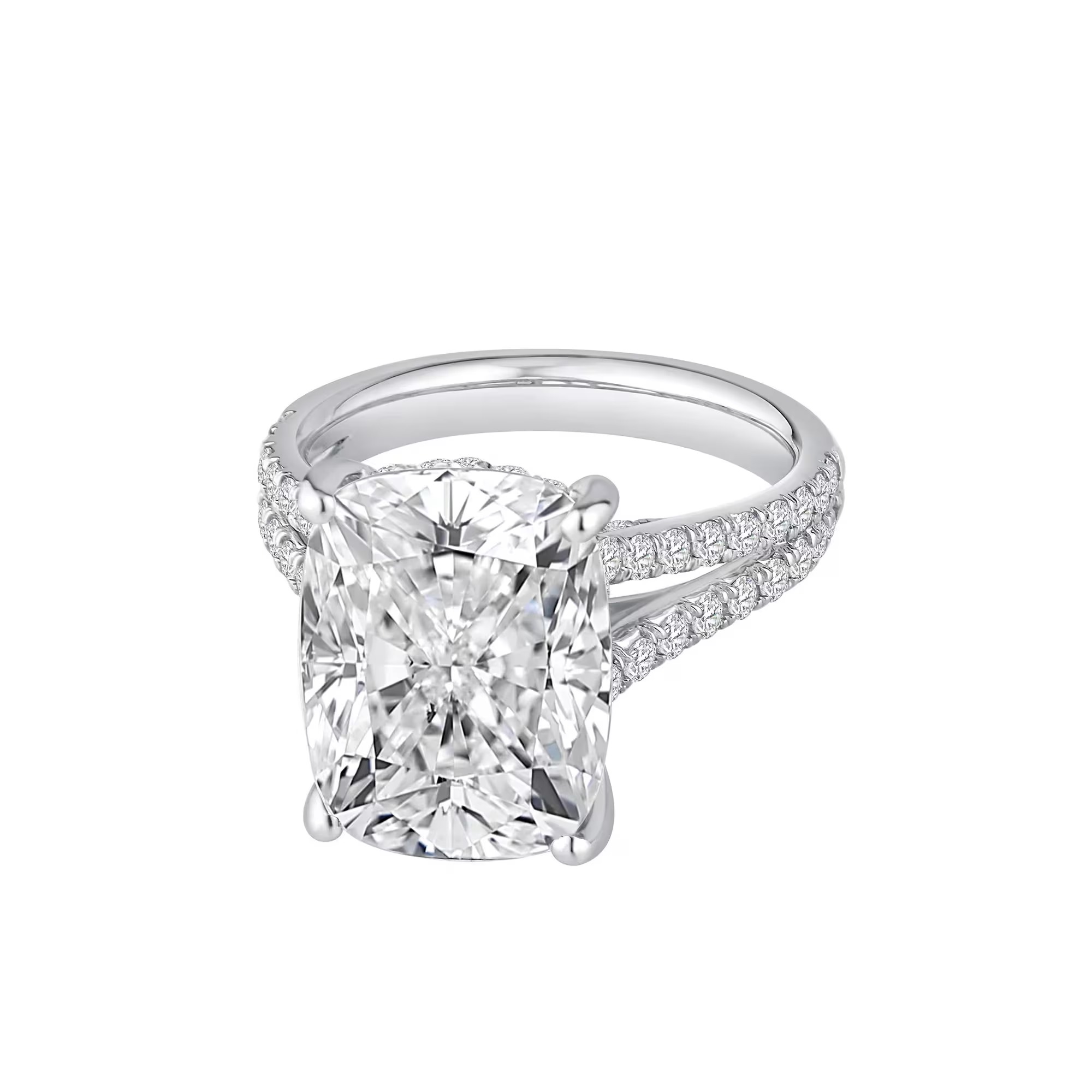 Approximately 10 carats, cushion, statement ring, diamond ring. A connoisseur-led design where the face-up stays calm, crisp, and intentionally luxurious. Colour family: Brilliant White. Clarity: VVS. Every decision is made for visual integrity: even sparkle, clean outline, and a flattering look across lighting conditions. It feels substantial on the hand, yet remains practical enough to be worn often rather than stored away. Ideal for boardroom-to-black-tie wear, with a look that stays precise under close scrutiny. Precision-Cut Radiance—a piece defined by brilliance, poise, and longevity.