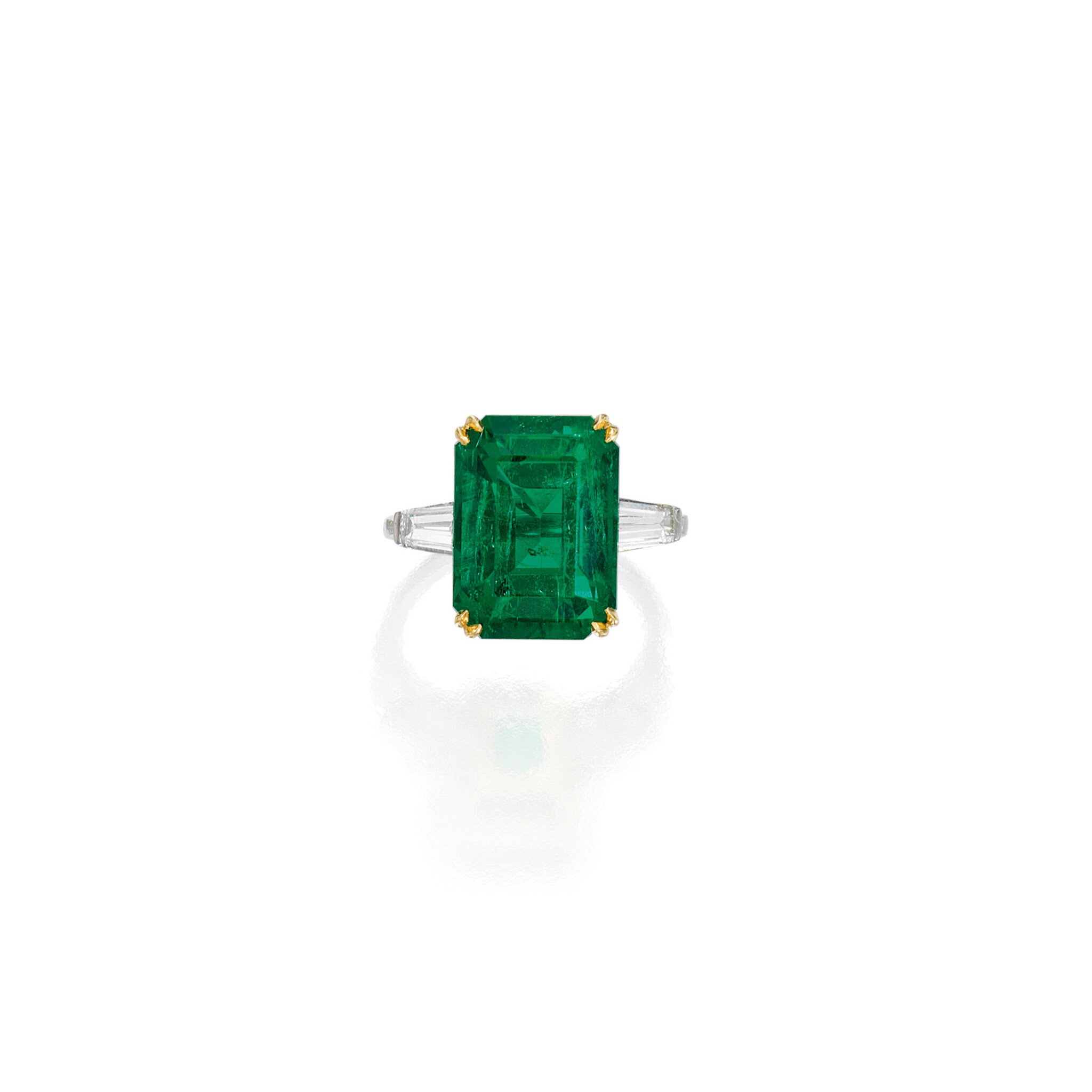 Approximately 10 carats, emerald, statement ring, diamond ring. A serious diamond ring with disciplined selection—meant to read clean at normal viewing distance. Colour family: Emerald Green. Metal: 14K White Gold. Every decision is made for visual integrity: even sparkle, clean outline, and a flattering look across lighting conditions. The craftsmanship is engineered so the sparkle reads as one surface of light—not scattered points competing for attention. Ideal for boardroom-to-black-tie wear, with a look that stays precise under close scrutiny. Collector’s Grade Grandeur—a piece defined by brilliance, poise, and longevity.