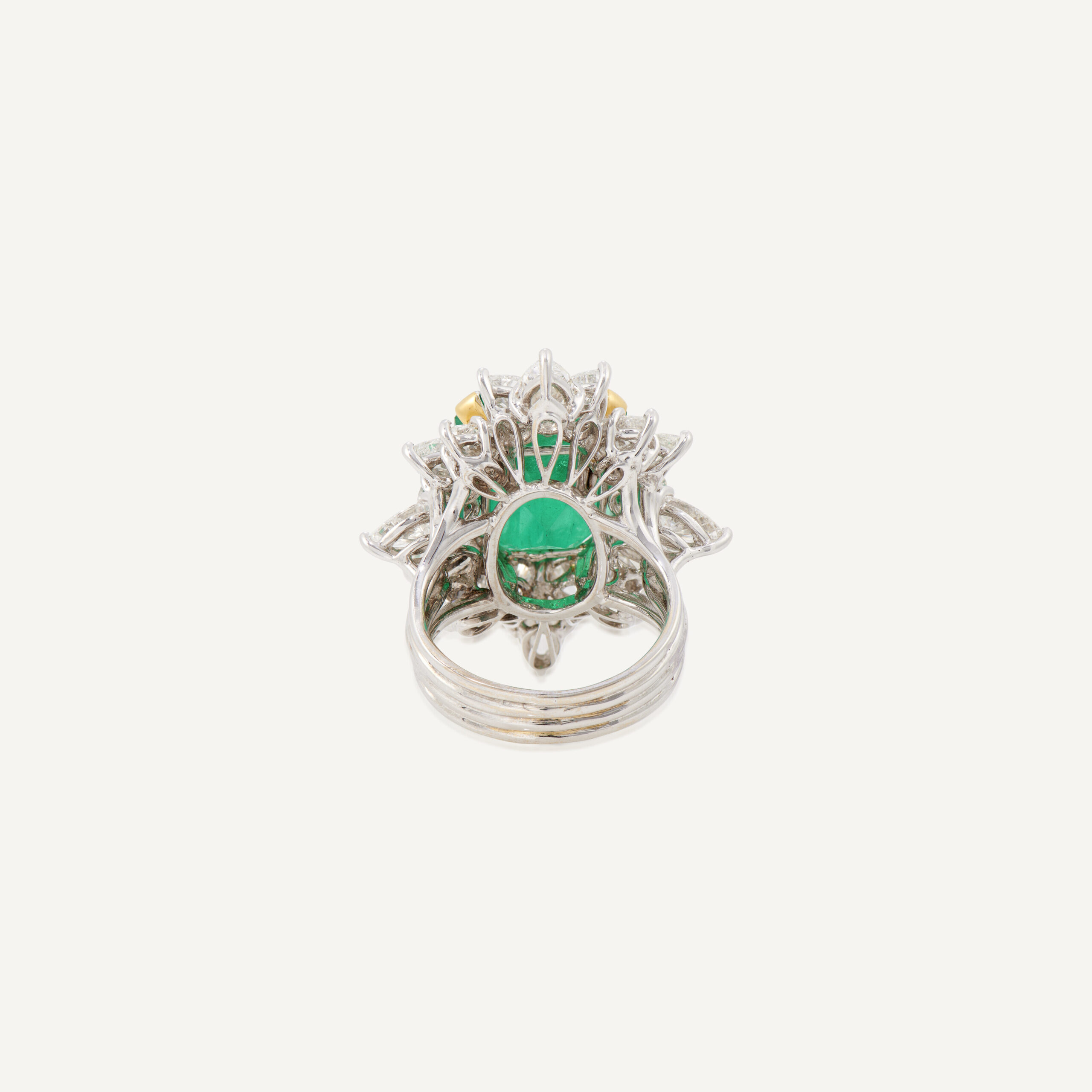 This ring is conceived as a serious asset as well as a beautiful object. The primary diamonds and gemstones, totalling approximately 10 carats, can be accompanied by certification from GIA, IGI or HRD certification available; final price varies with lab selection, ensuring the grades behind the Emerald Green brilliance are recognised wherever fine jewelry is understood.