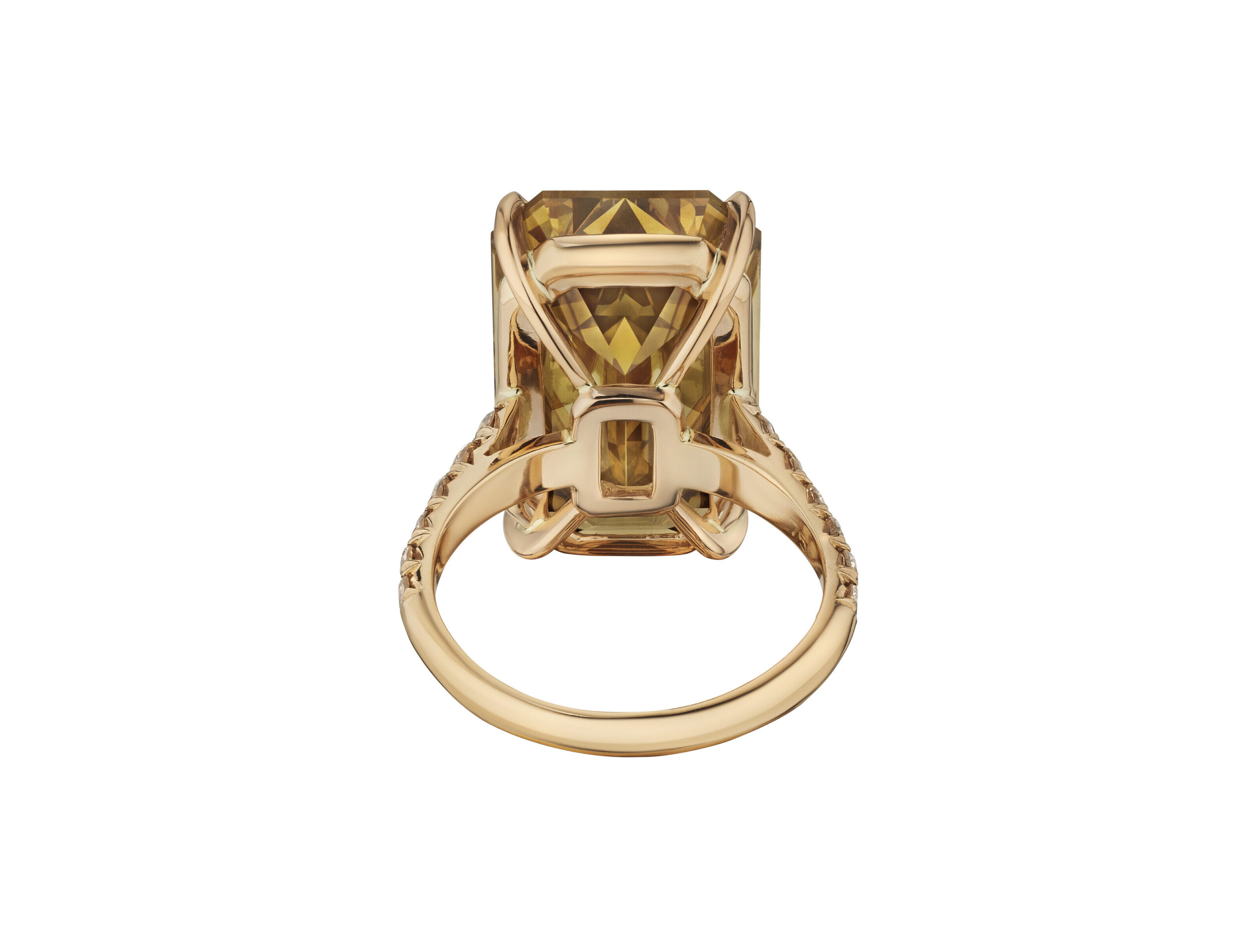 - Alexa Chung · Stylists think in textures as much as colours; the sharp emerald cut facets and smooth fancy yellow radiance of this ring add a polished texture to any look.