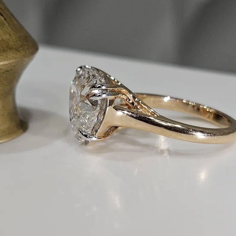 Viewed from any angle, the approximately 10 carats of Brilliant White heart shape diamonds create a wide field of brilliance across the finger. The carat weight is generous enough to be unmistakable in a room, yet balanced so that the ring never feels overpowering.