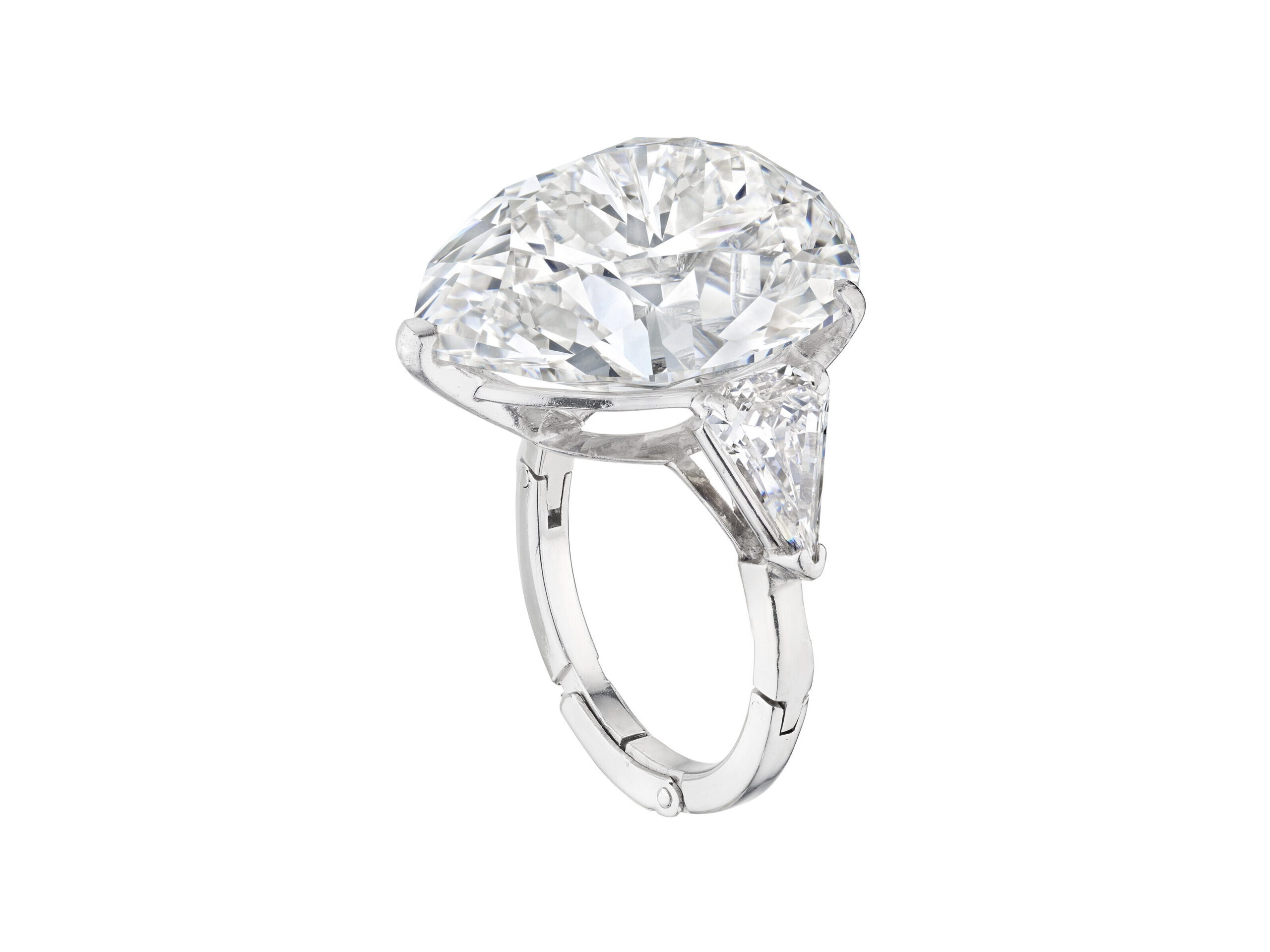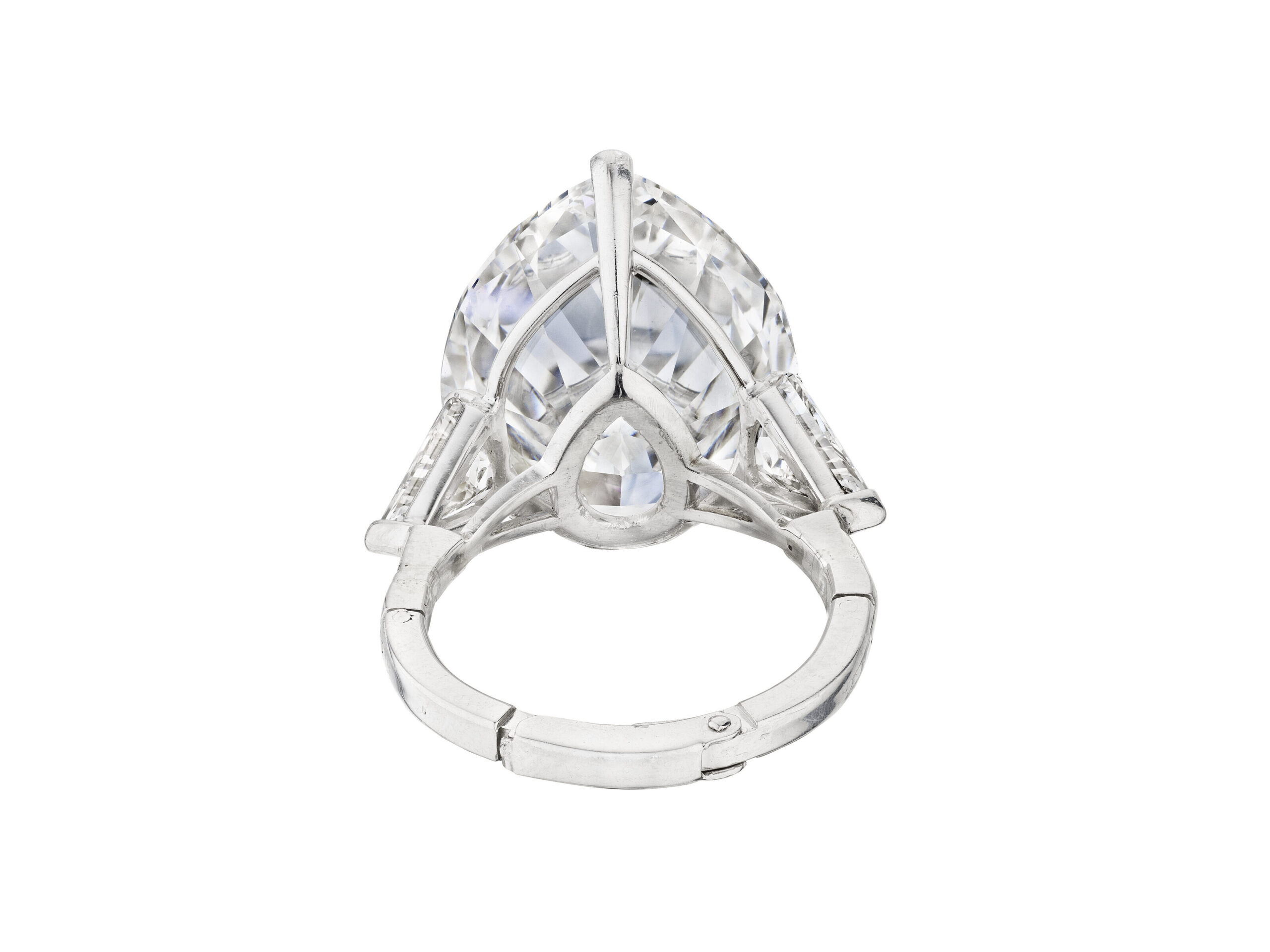 Drawing on the visual codes of important private-collection pieces, this Legacy ring frames approximately 10 carats of Brilliant White pear shape diamonds in a poised, architectural setting.