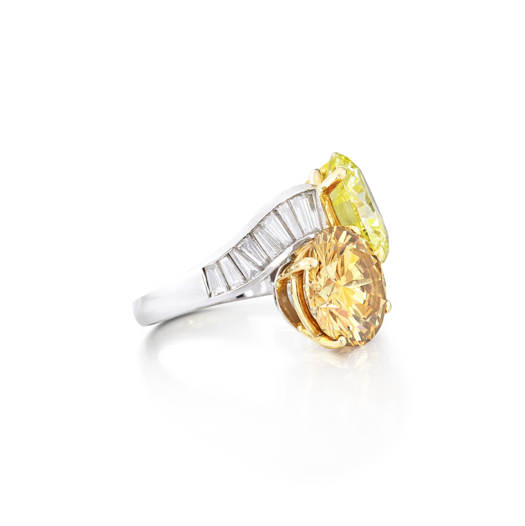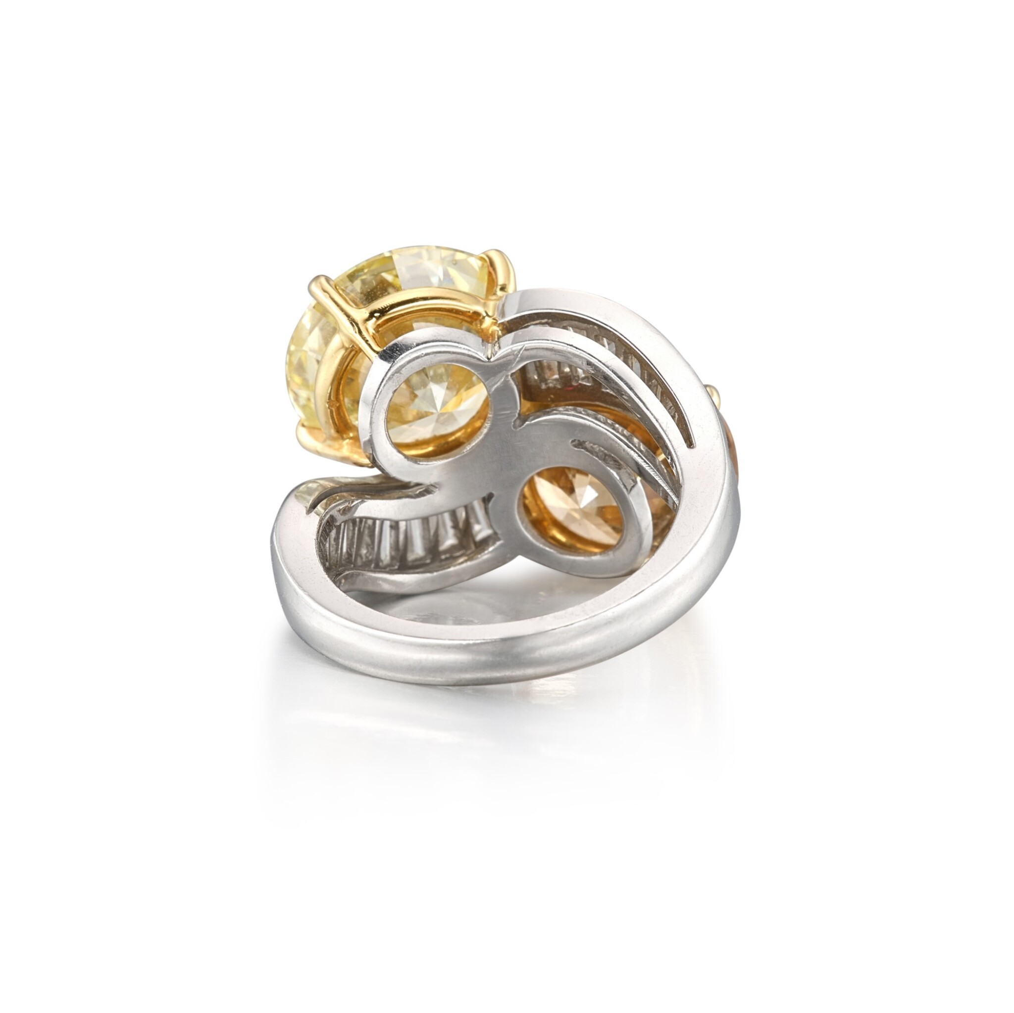 fancy colour diamonds are screened for a refined face-up appearance: minimal light leakage, a clean table and a harmonious contrast between bright and shaded facets that gives the ring its three-dimensional life.