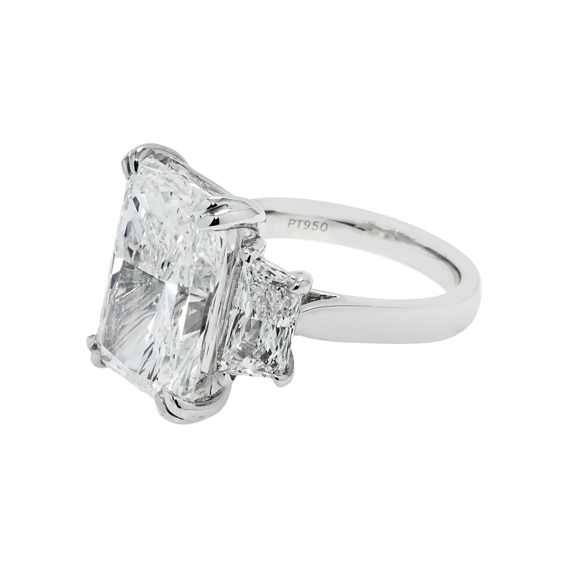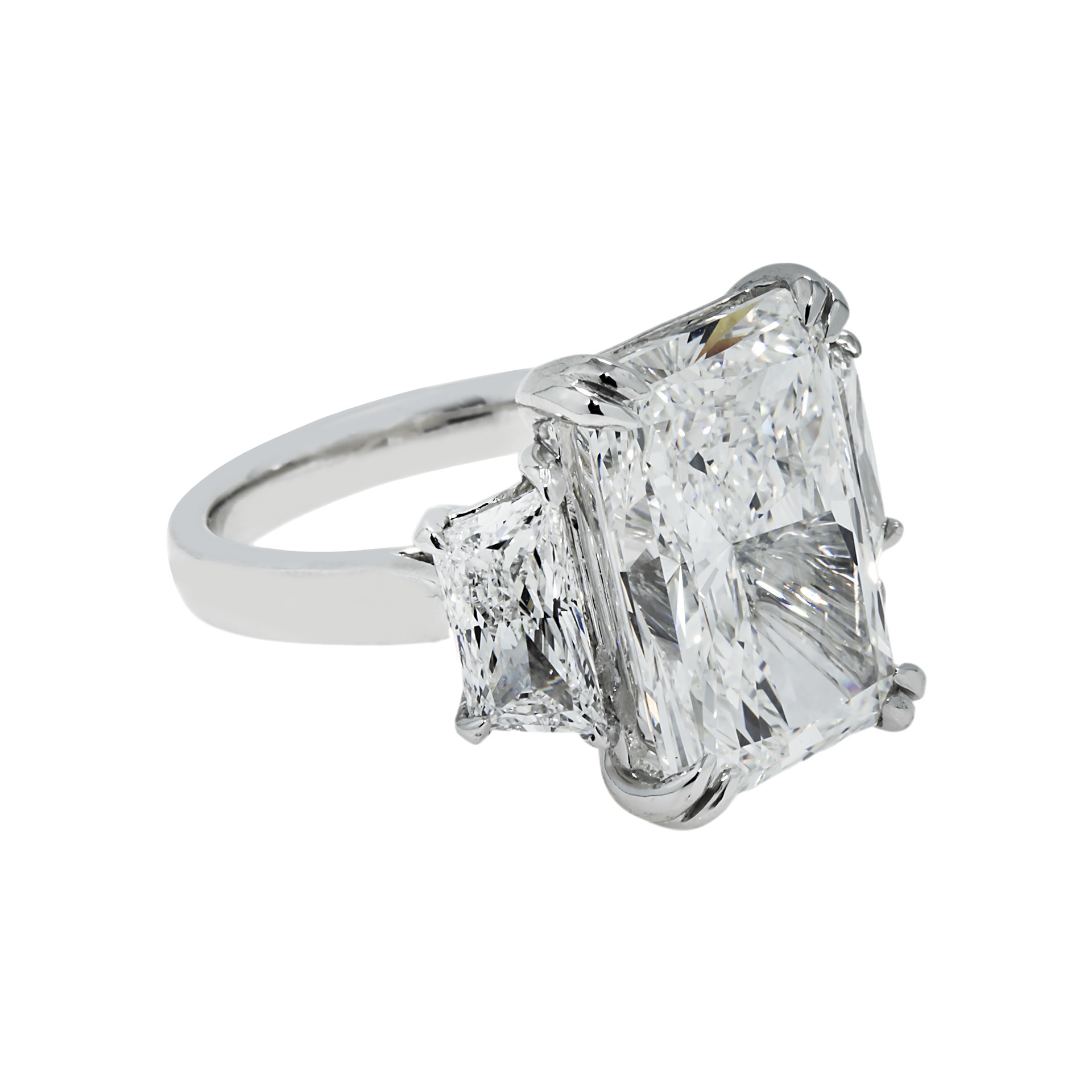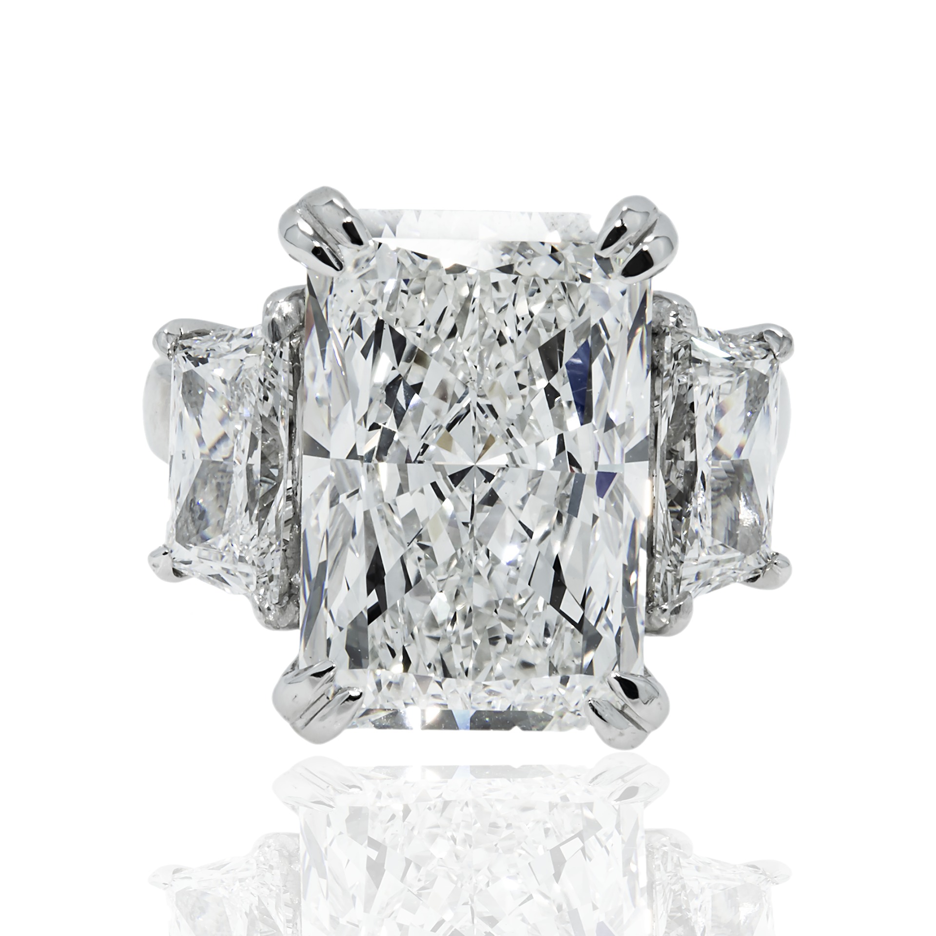 Celebrating the powerful allure of Brilliant White diamonds, this Legacy ring showcases approximately 11.24 carats of Radiant cut diamonds in a luminous high jewelry silhouette.