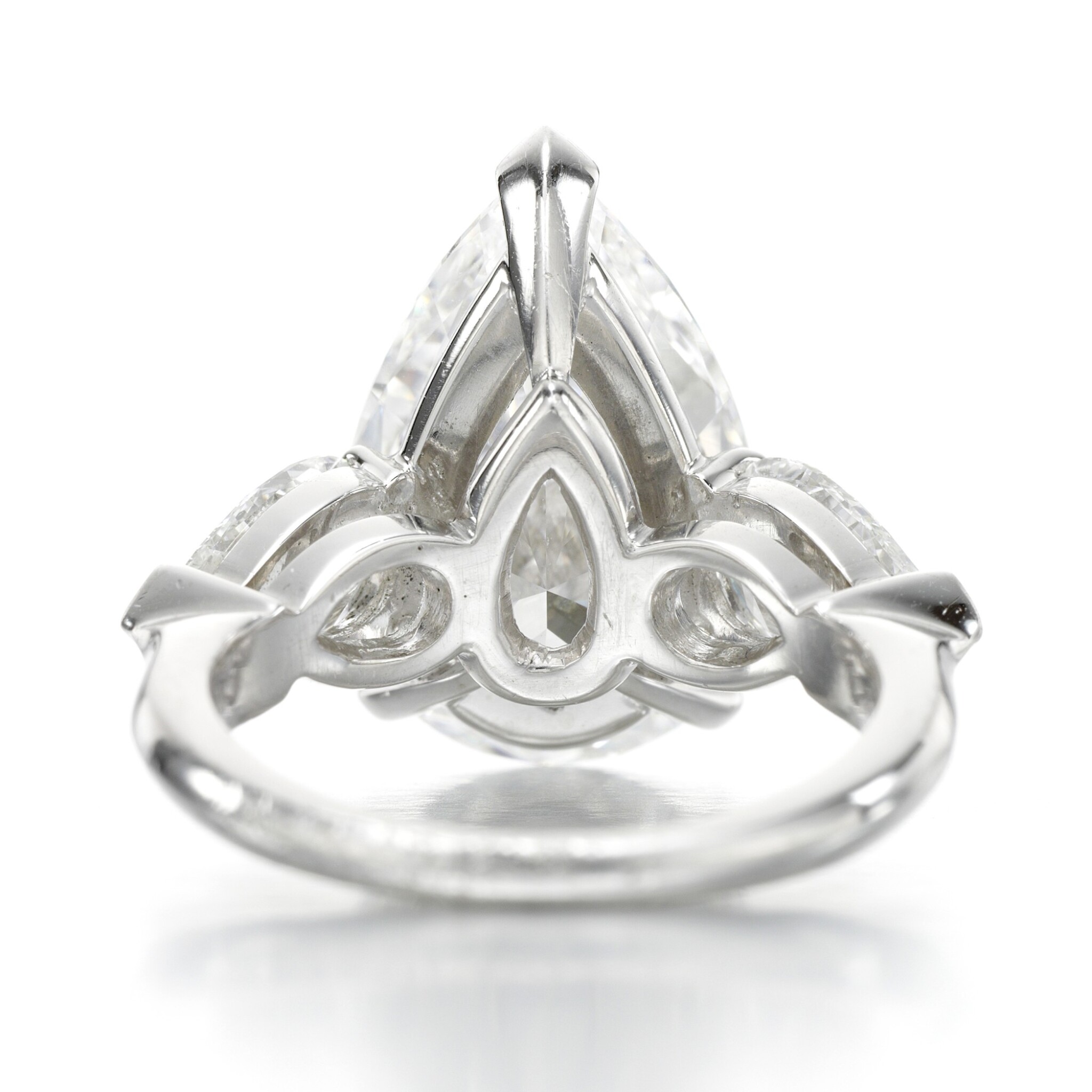Celebrating the powerful allure of Brilliant White diamonds, this Legacy ring showcases approximately 11.5 carats of pear shape diamonds in a luminous high jewelry silhouette.
