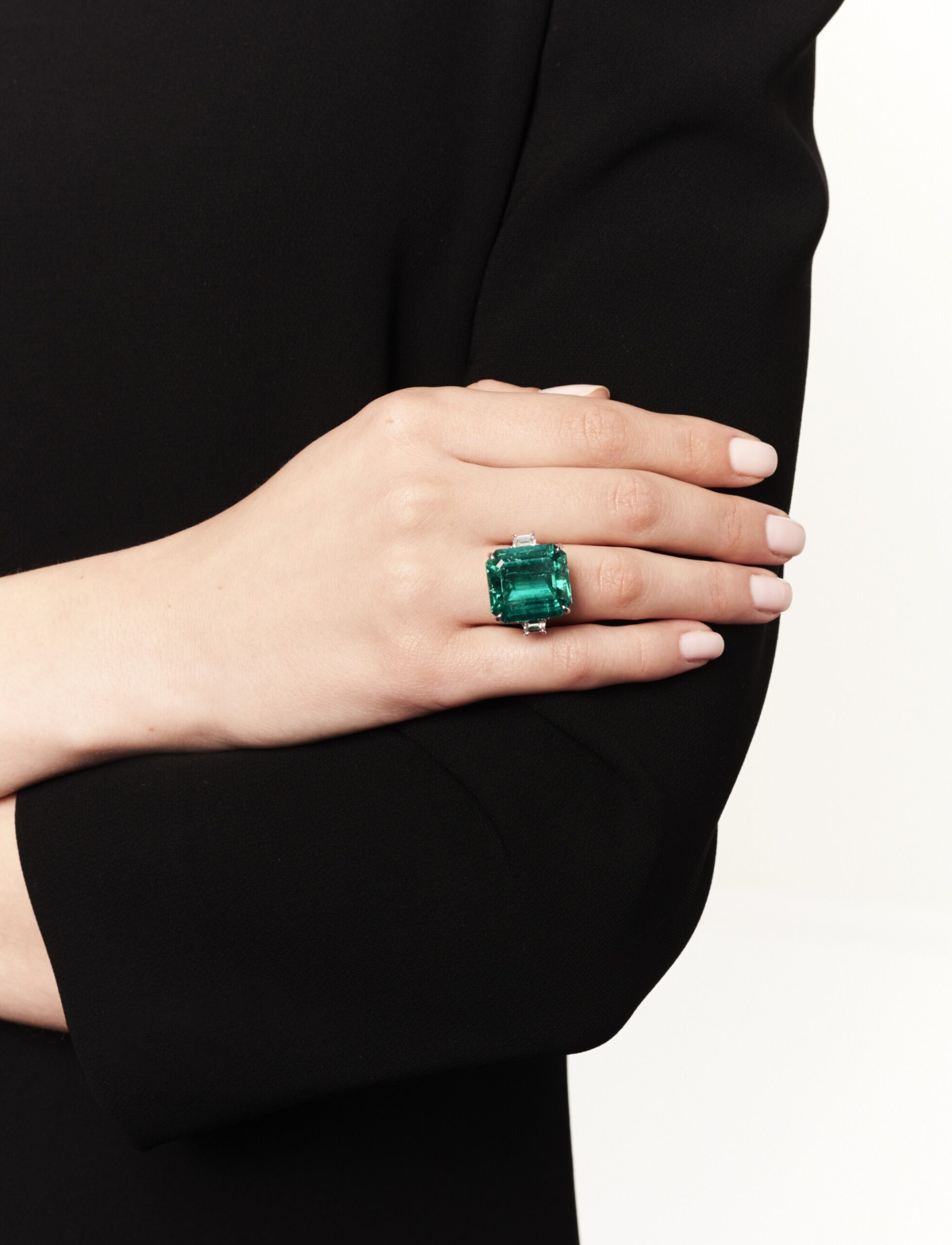 Many Legacy clients think of rings like this as “wearable reserves” – tangible, movable assets that can cross borders more easily than other forms of wealth. With 12.35 carats of Emerald Green diamonds and gemstones, a reassuring feel and a refined High Jewelry Statement Ring profile, this piece is built to retain both its impact on the hand and its relevance in a long-term collection.