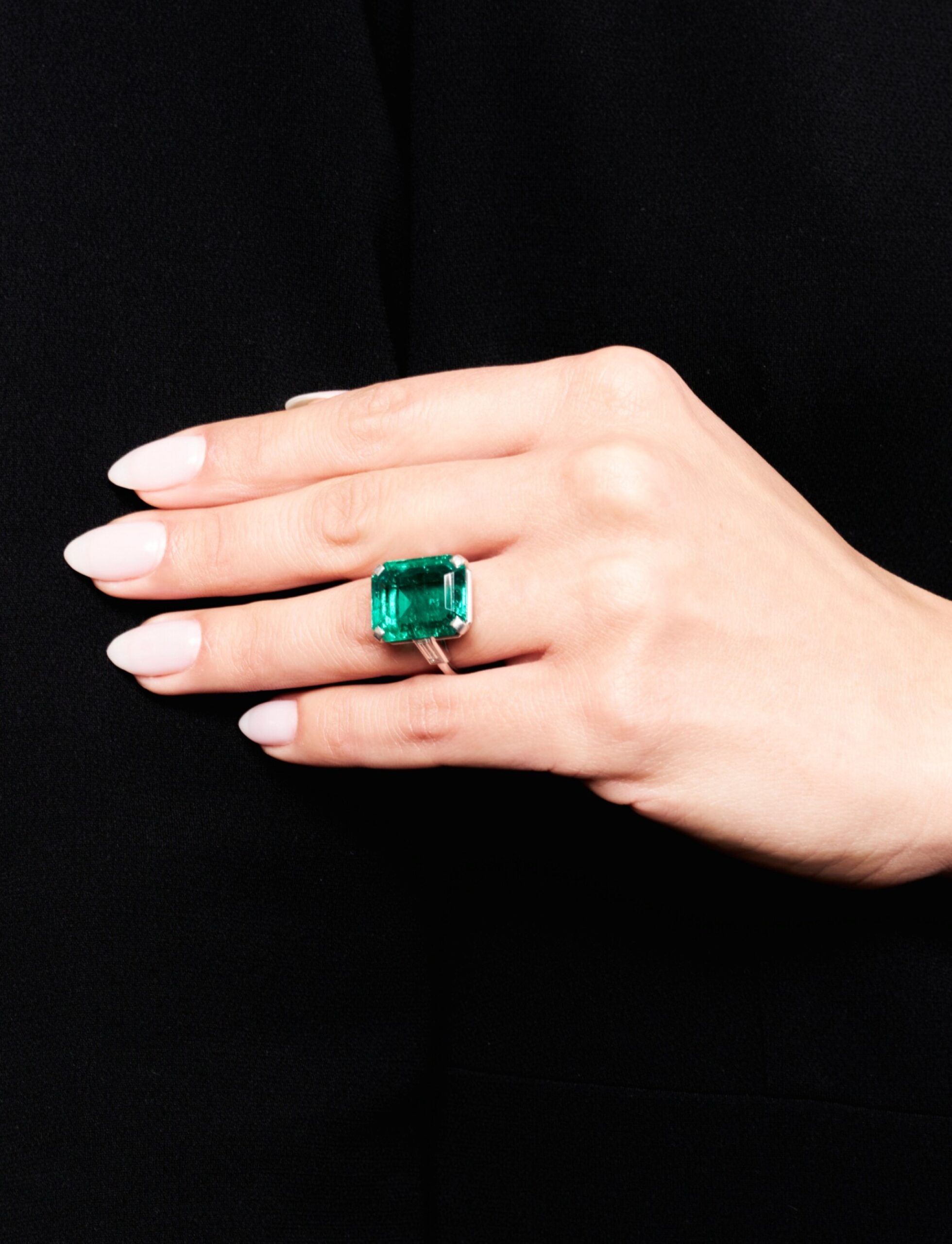 Clients who favour quiet power often wear this 12.35 carats Emerald Green diamonds and gemstones ring as their one definitive piece. In that mode, it pairs beautifully with monochrome ensembles – black, white, charcoal and midnight blue – so that the Emerald reflections become the brightest element in the room.