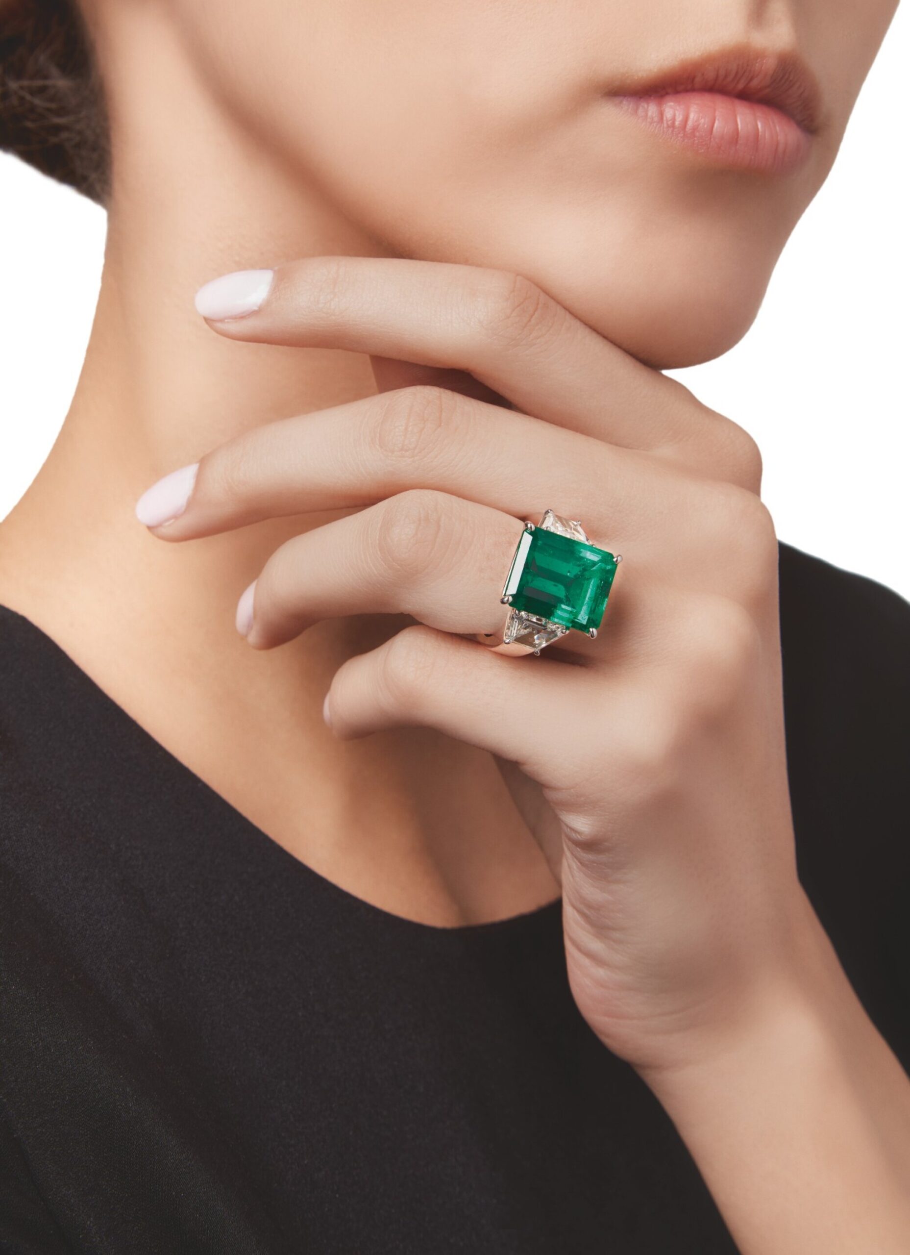 This ring naturally attracts clients who are already comfortable around serious pieces – people who browse estate catalogs, follow high jewelry auctions and have a precise sense of what they want their next acquisition to say about them. The disciplined Emerald line and High Jewelry Statement Ring silhouette read instantly as high jewelry to a trained eye.