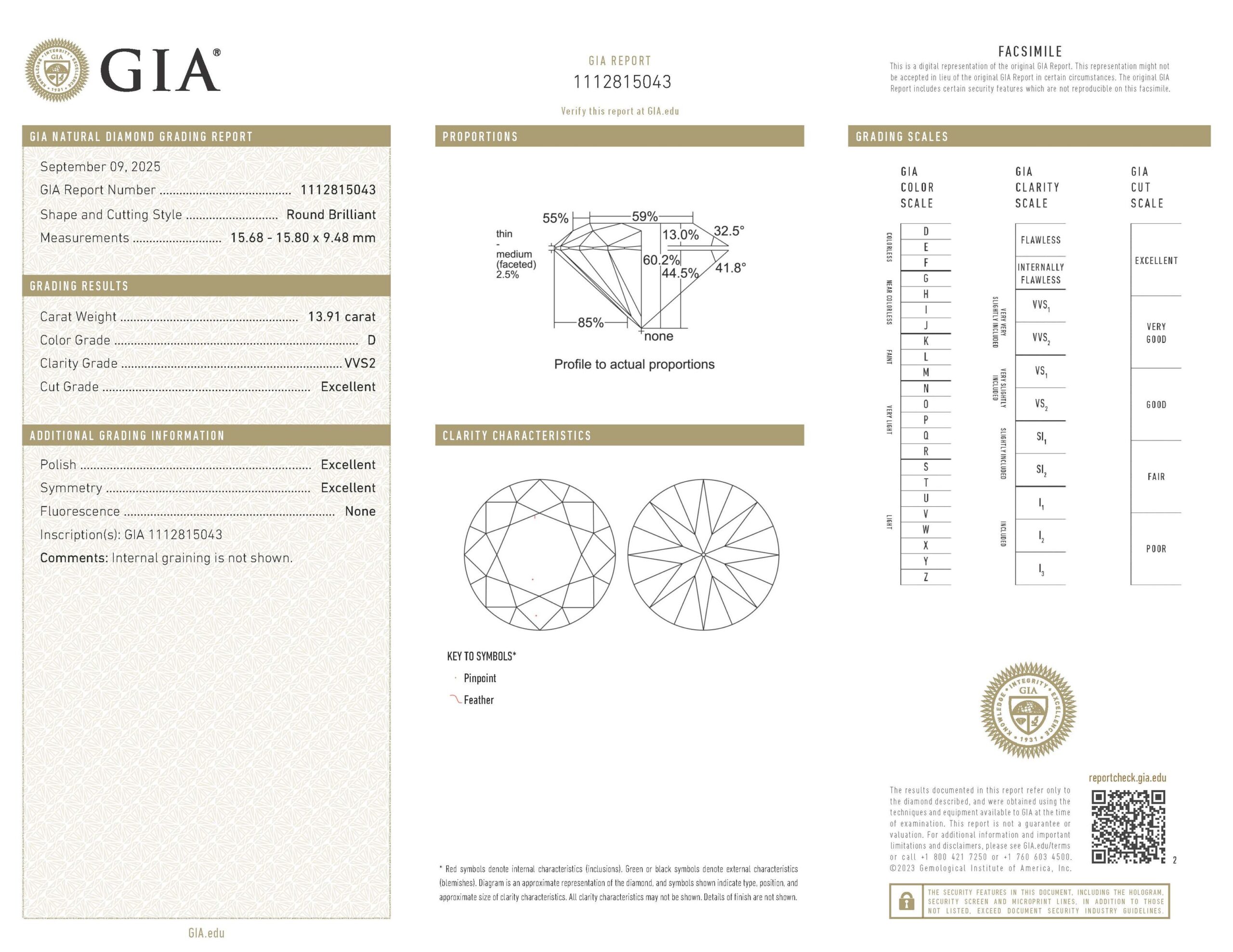 13.91 Carat Round Brilliant Statement | Brilliant White | 14K White Gold | Iconic Presence