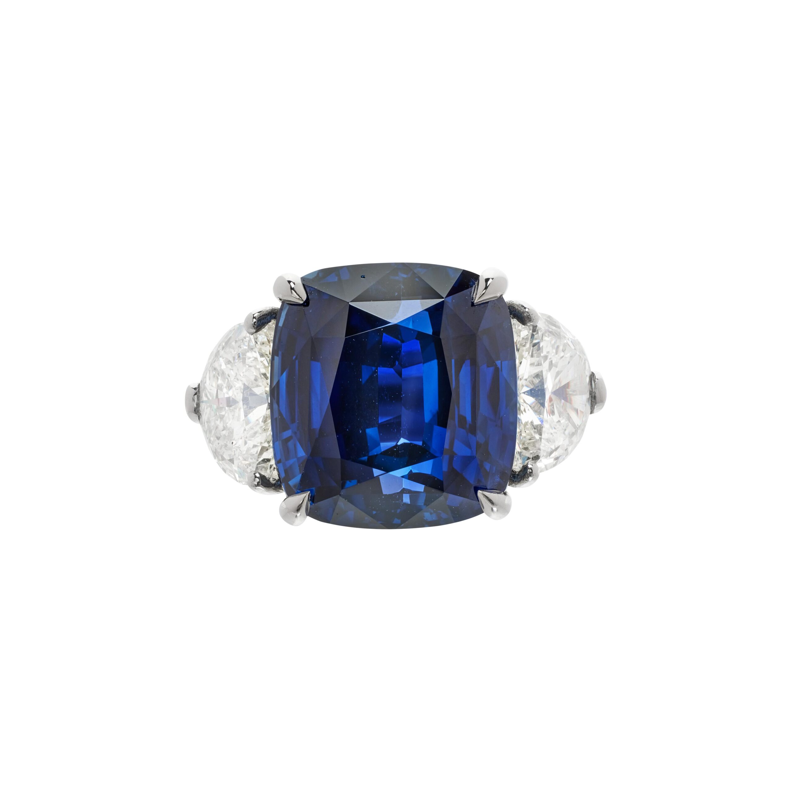 Approximately 14.33 carats, round brilliant, statement ring, diamond ring. A connoisseur-led design where the face-up stays calm, crisp, and intentionally luxurious. Colour family: Royal Blue Sapphire. Every decision is made for visual integrity: even sparkle, clean outline, and a flattering look across lighting conditions. It feels substantial on the hand, yet remains practical enough to be worn often rather than stored away. For clients who invest in fewer, better jewels—and want that decision to show. Iconic Presence—a piece defined by brilliance, poise, and longevity.