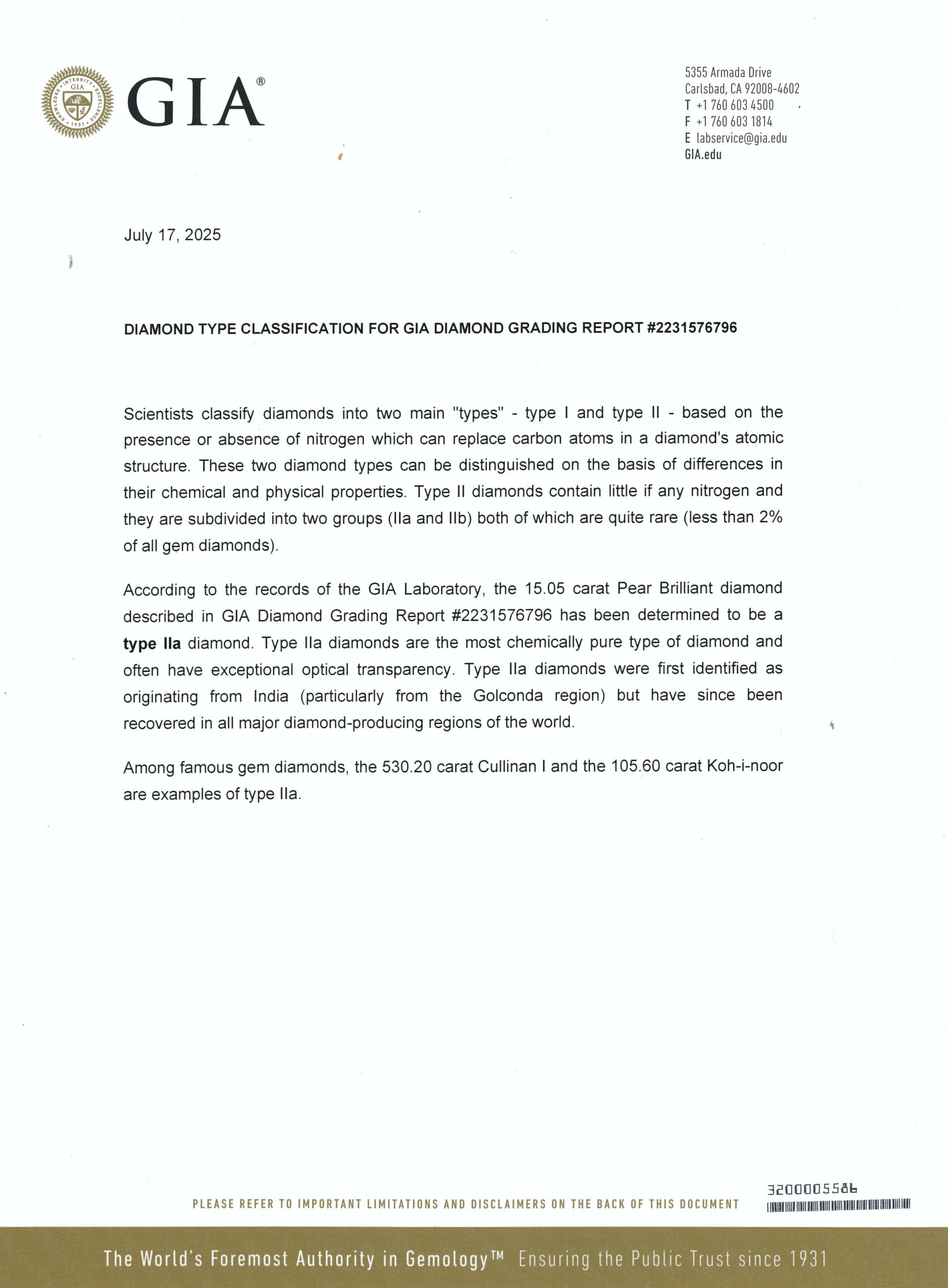 15.05 Carat Pear Statement | Brilliant White | 18K Gold | Unparalleled Brilliance | Heirloom