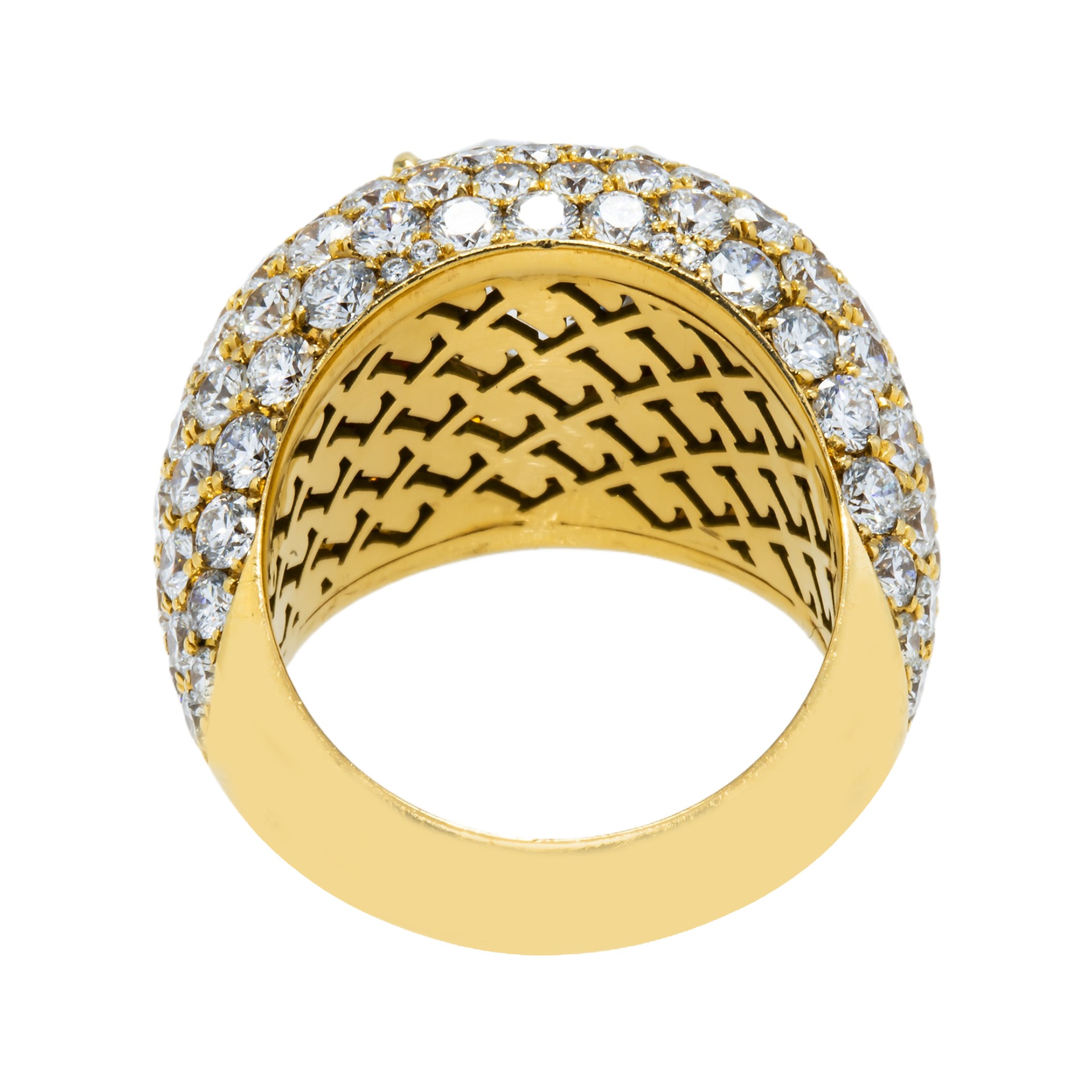 Legacy prefers to build rings from the inside out. First, a quiet, stable framework in 18K Yellow Gold is drawn to echo the flow of the Round line, ensuring that the diamonds sit exactly where the eye expects them to be when the hand is at rest, in motion, or caught by camera flash.