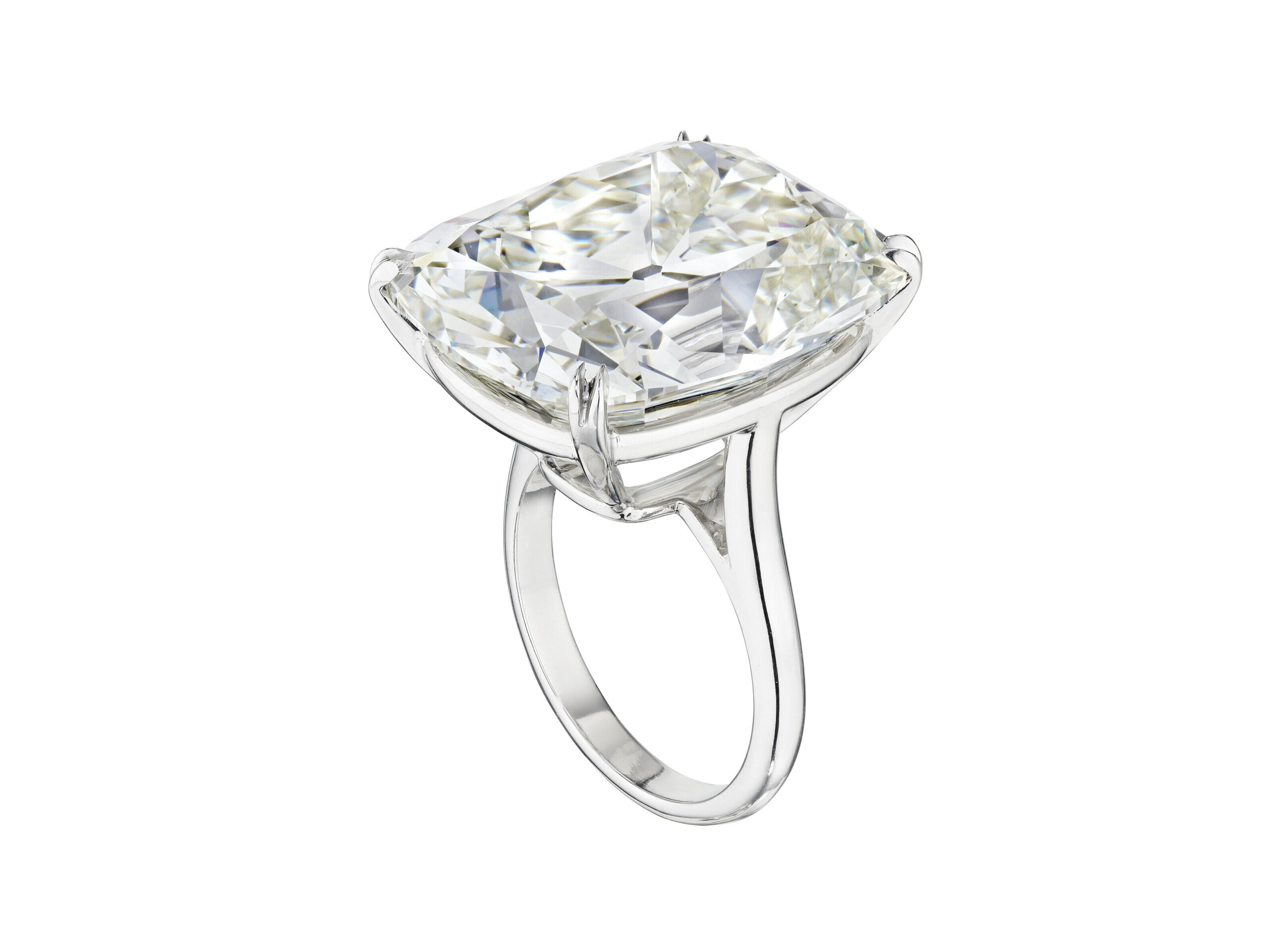 Approximately 15 carats, cushion, statement ring, diamond ring. A connoisseur-led design where the face-up stays calm, crisp, and intentionally luxurious. Colour family: Brilliant White. Clarity: VS. Chosen and composed for photography, evenings, and everyday gestures—so the ring looks impeccable in real life. It is the kind of ring that lives well in a serious jewellery wardrobe: confident, clean, and consistently flattering. Made to be worn often, remembered clearly, and passed forward with pride. High Jewellery Supremacy—a piece defined by brilliance, poise, and longevity.