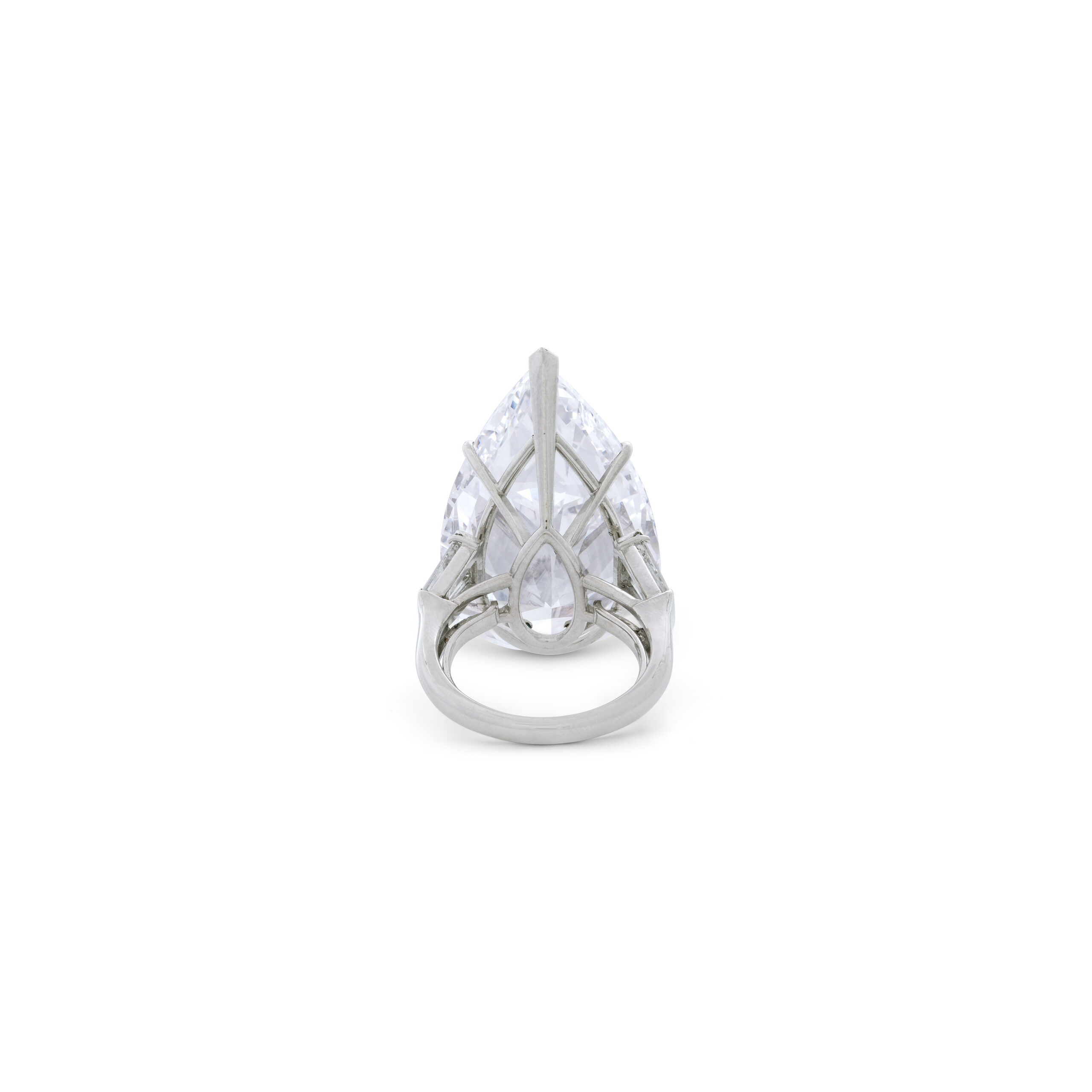 Approximately 15 carats, pear, statement ring, diamond ring. Built for clients who judge a ring in motion, not only in perfect studio light. Colour family: Brilliant White / D color. Clarity: VVS. The silhouette is disciplined and intentional, designed to keep the piece elegant rather than overstated. It feels substantial on the hand, yet remains practical enough to be worn often rather than stored away. Ideal for boardroom-to-black-tie wear, with a look that stays precise under close scrutiny. Flawless-Level Presence—a piece defined by brilliance, poise, and longevity.