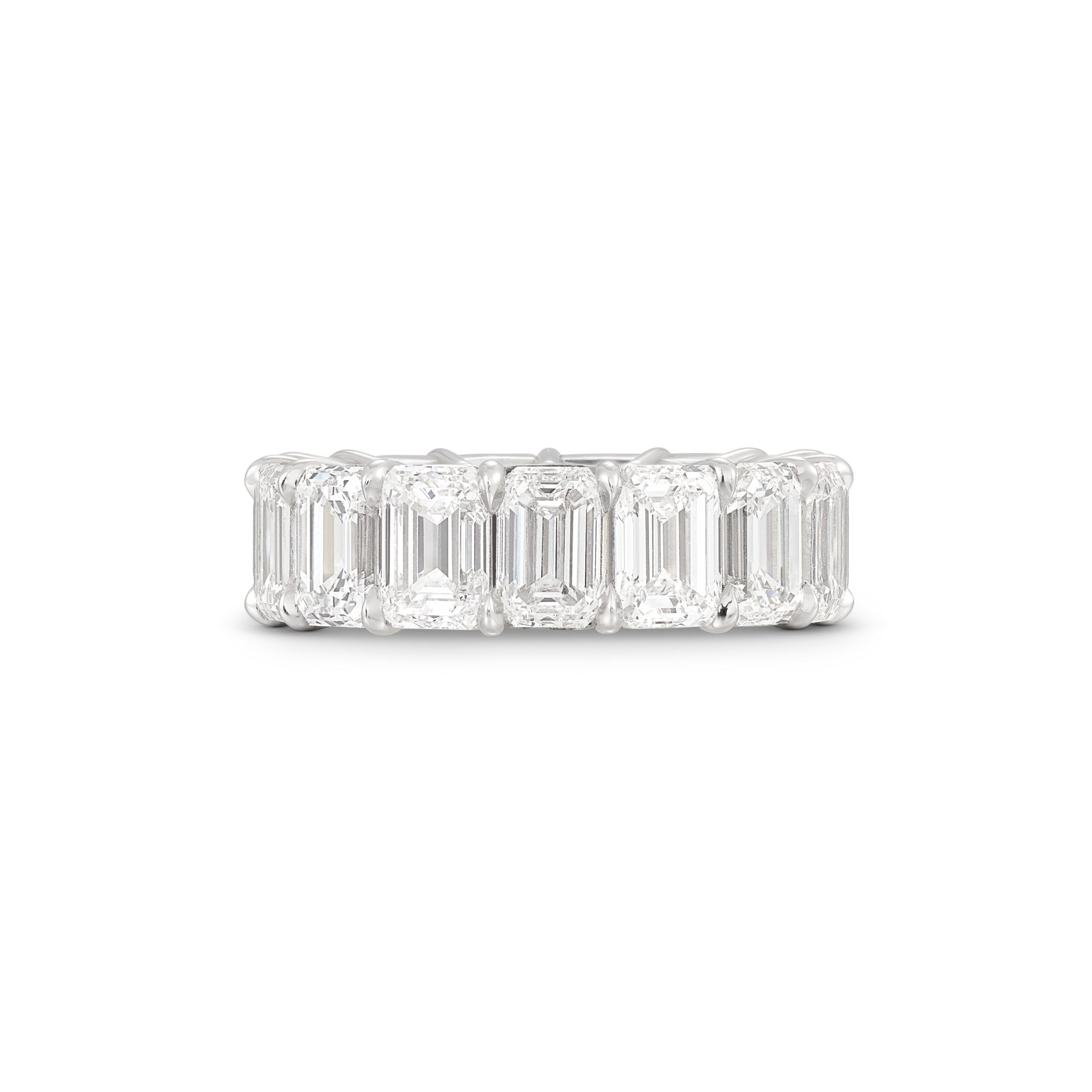 From a styling perspective, the strength of this design lies in its clarity: a disciplined row of Emerald diamonds and gemstones, a focused 16 carats of Emerald Green light and a considered Diamond Eternity Band profile. In everyday use, that means you can keep everything else quiet and still feel fully dressed – a single bracelet, a classic pair of earrings and perhaps one additional ring are more than enough.