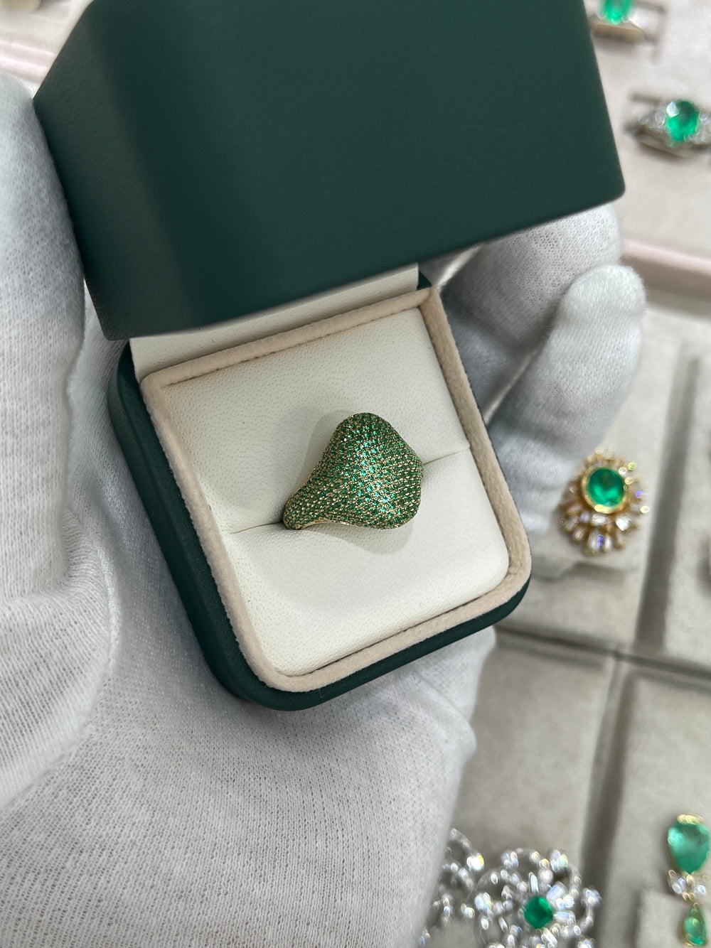 - Jenson Button · The same way a personal trainer fine-tunes programs, master setters fine-tune this 2.01tcw emerald pave signet ring, adjusting emerald cut angles and emerald green balance until everything functions at peak.