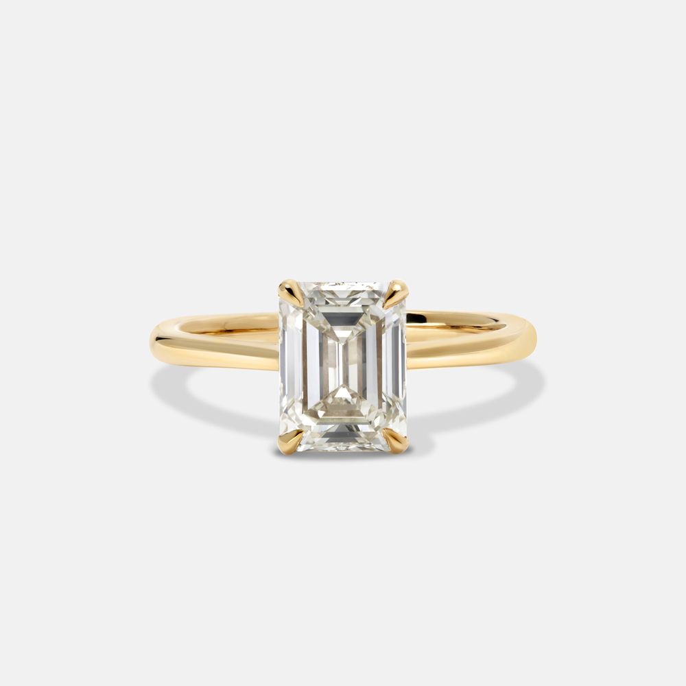 The presence of Emerald cut diamonds in this Brilliant White palette gives the ring a calm, confident radiance that transcends trend and season.