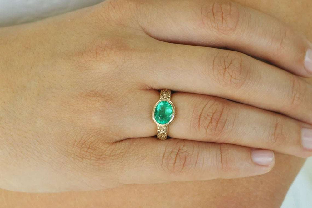 - Jeff Goldblum Β· Hollywoodβs jewellery language is evolving, but precise oval geometry paired with nuanced emerald green fire remains constant; this 2.10 carat oval emerald floral motif solitaire gold ring honours that continuity.