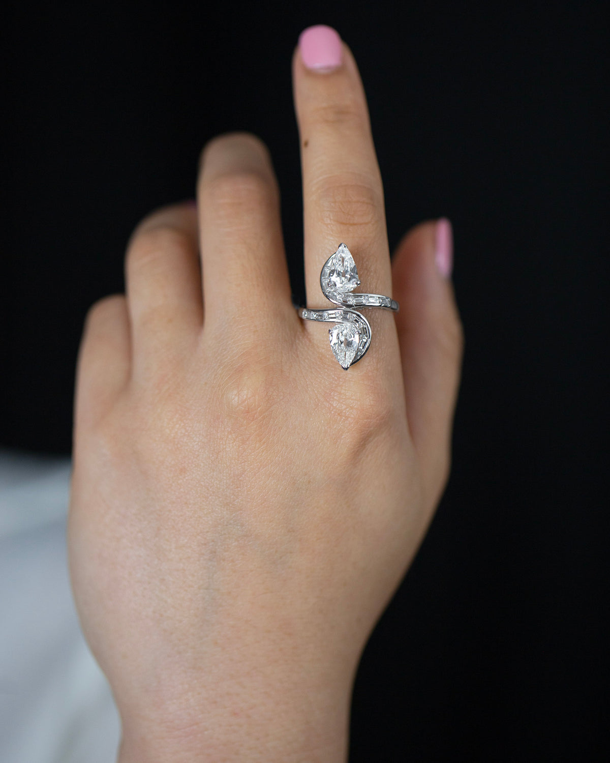 For clients who enjoy a strong diamond look, the 2.48 carats of pear shape diamonds provide exactly that effect. The ring feels like a true high jewelry statement when you enter a room, yet remains balanced enough to be worn with confidence every day.