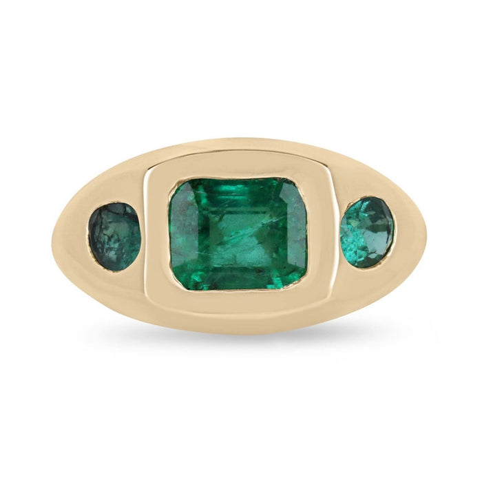 • Salma Hayek Β· The jewels that translate across cinema, streaming and red carpet are those with precise emerald cut faces and coherent emerald green light; this 2.63tcw 18k trilogy gold natural lush medium dark green emerald unisex 3 stone ring is tuned for that multi-platform life.