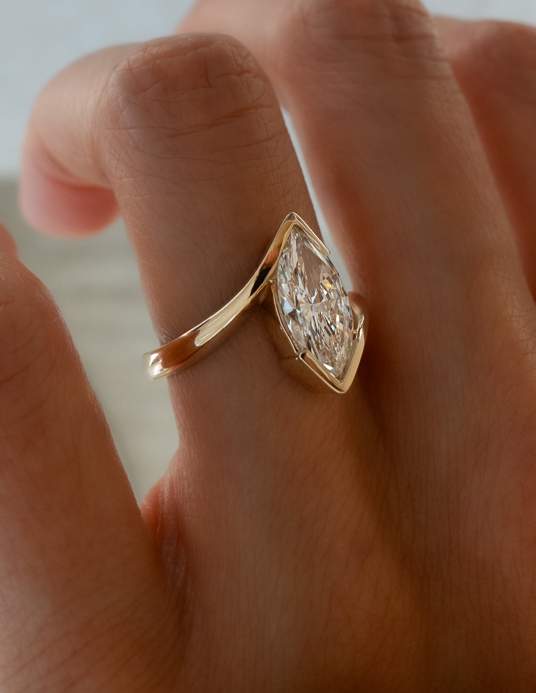 Approximately 2 carats, marquise, statement ring, diamond ring. A serious diamond ring with disciplined selectionβmeant to read clean at normal viewing distance. Colour family: Brilliant White. Every decision is made for visual integrity: even sparkle, clean outline, and a flattering look across lighting conditions. It feels substantial on the hand, yet remains practical enough to be worn often rather than stored away. Made to be worn often, remembered clearly, and passed forward with pride. A Classic Statementβa piece defined by brilliance, poise, and longevity.