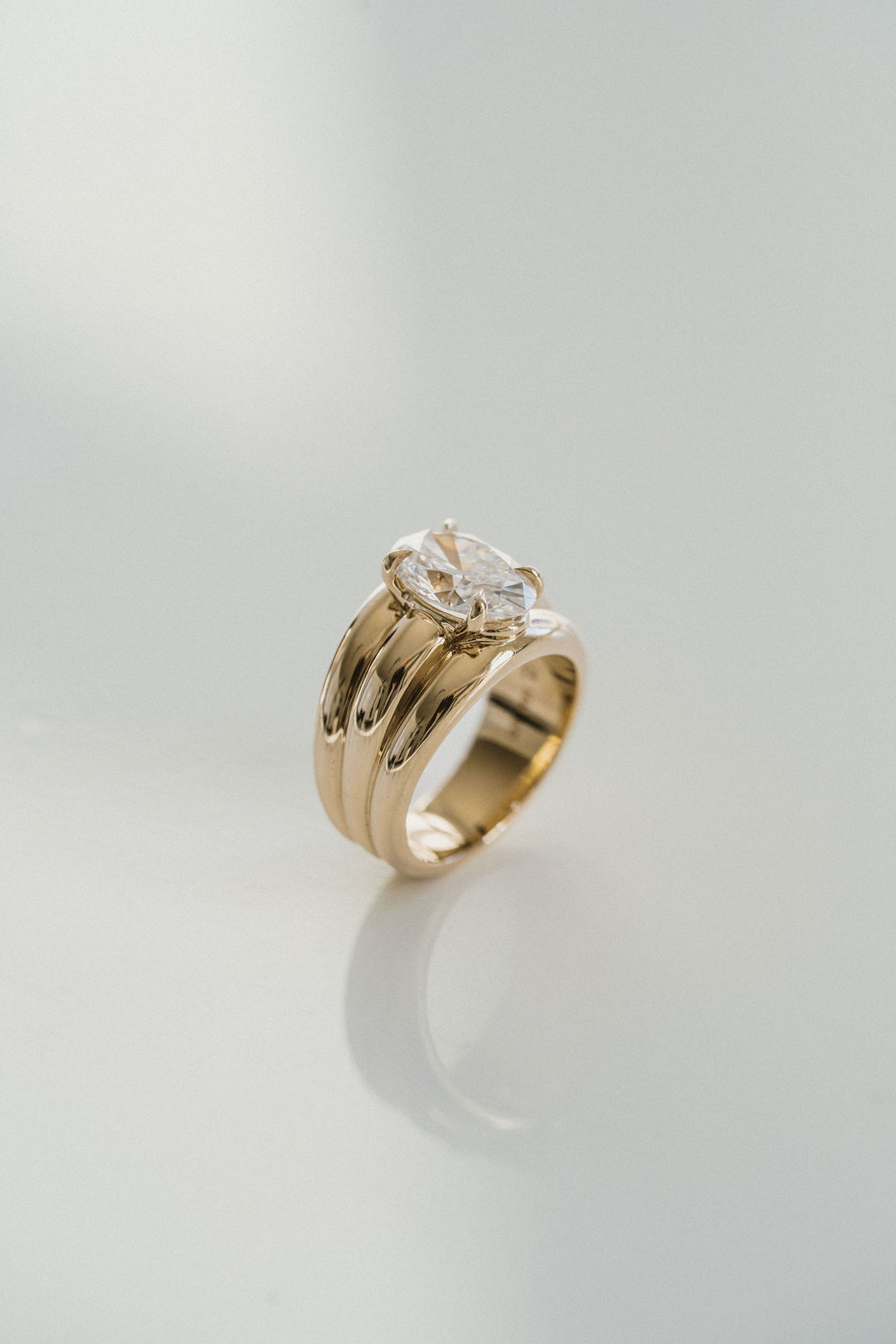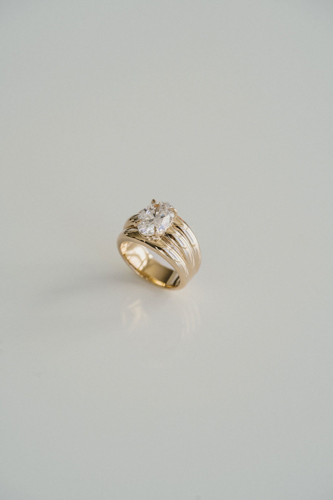 Approximately 2 carats, oval, statement ring, diamond ring. A connoisseur-led design where the face-up stays calm, crisp, and intentionally luxurious. Colour family: Brilliant White. Metal: 14K White Gold. Chosen and composed for photography, evenings, and everyday gesturesβso the ring looks impeccable in real life. It is the kind of ring that lives well in a serious jewellery wardrobe: confident, clean, and consistently flattering. A natural choice for milestones, private collections, and heirloom-led gifting. Effortless Eleganceβa piece defined by brilliance, poise, and longevity.