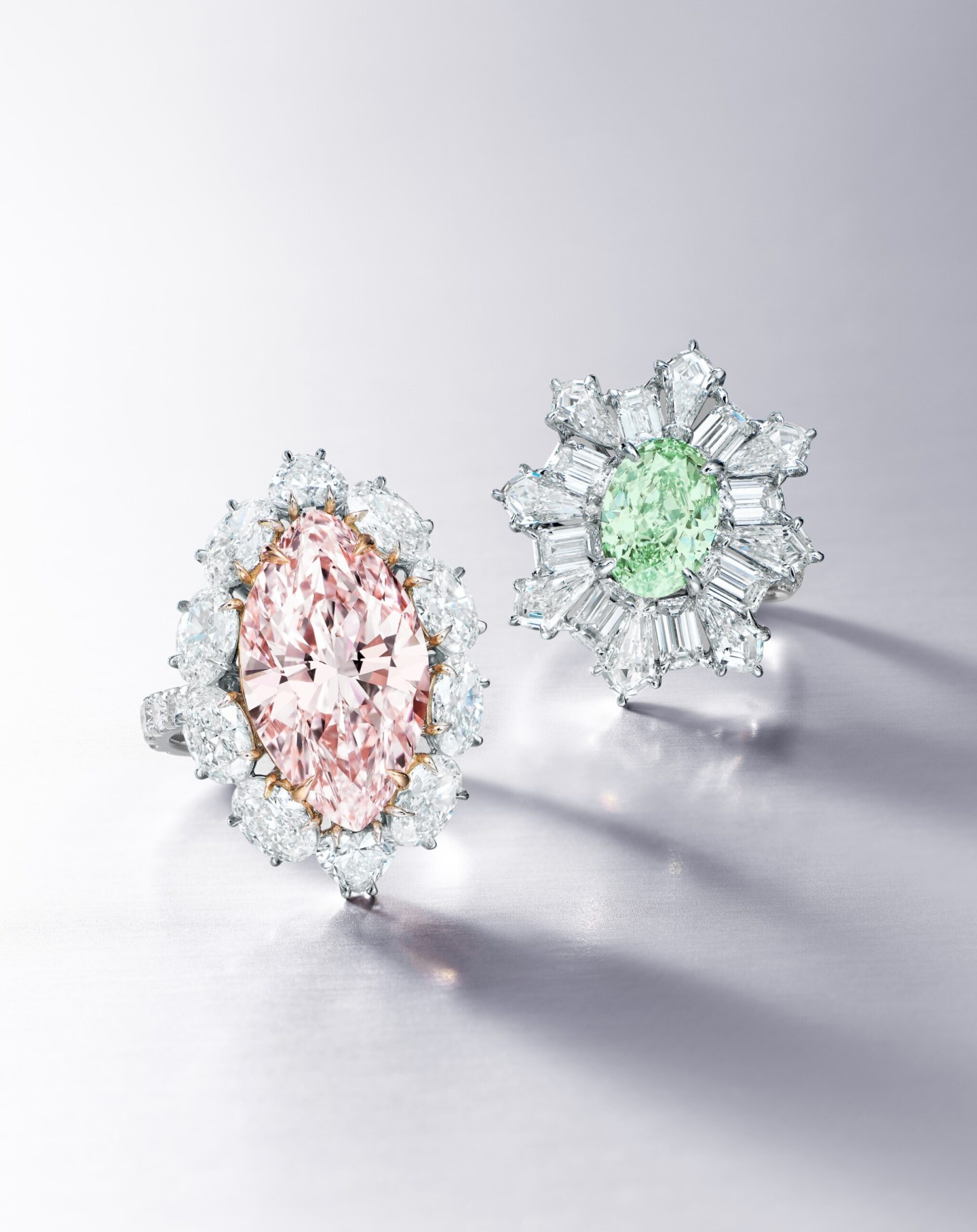 Seen across a room or studied up close, the fancy colour diamonds show a measured brilliance: sharp yet graceful reflections, balanced fire and an even, luminous tone that flatters every skin colour. Nothing shouts, yet everything speaks of careful cutting and serious selection.