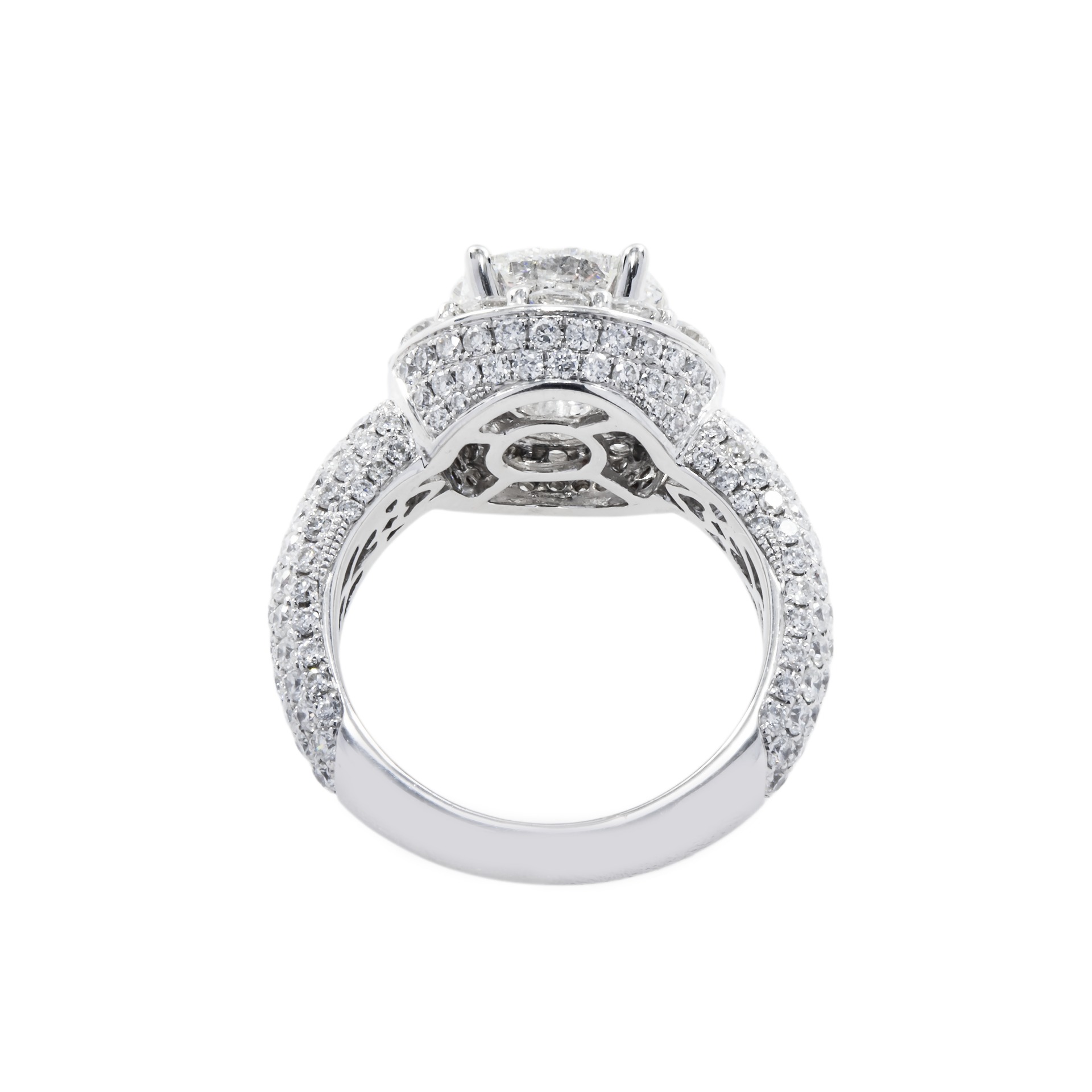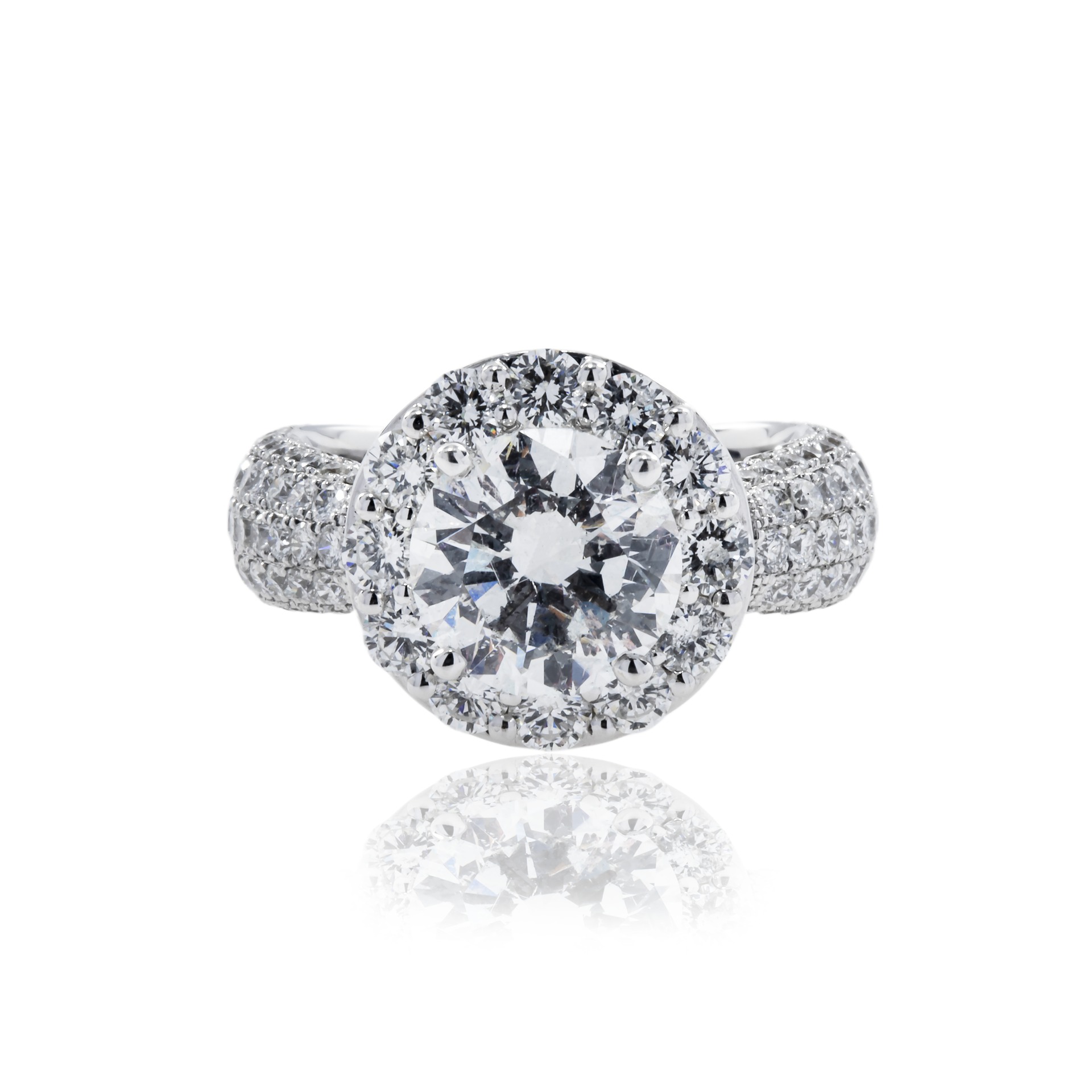 Approximately 3.06 carats, round brilliant, diamond ring. Built for clients who judge a ring in motion, not only in perfect studio light. Colour family: Brilliant White. Metal: 18K White Gold. The setting prioritises stability and comfort, so the diamonds sit securely while keeping light open across the surface. The craftsmanship is engineered so the sparkle reads as one surface of lightβ€”not scattered points competing for attention. An enduring asset in jewel form: beautiful to wear, credible to document. Effortless Eleganceβ€”a piece defined by brilliance, poise, and longevity.