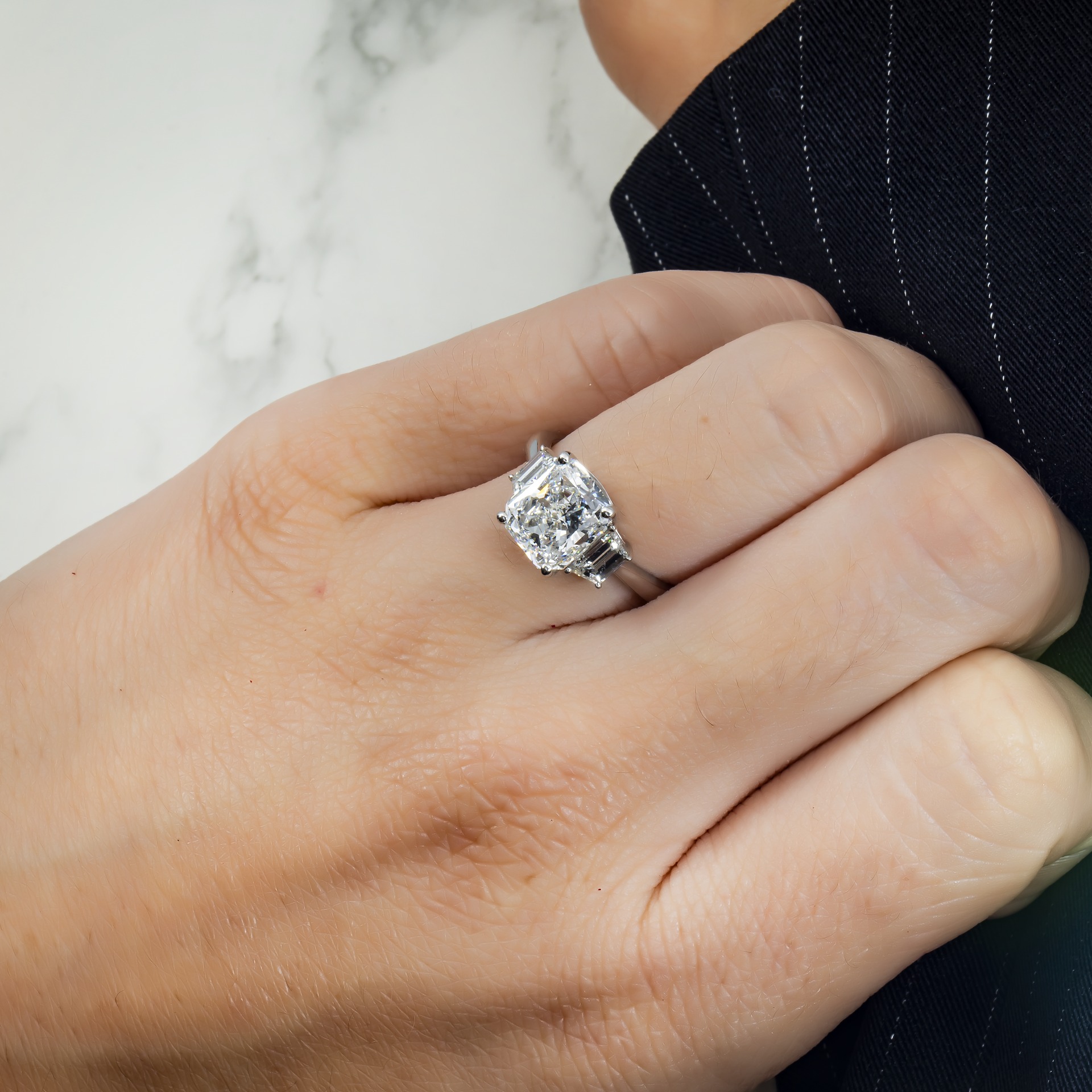 For collectors, this ring often plays the role of a βsignatureβ piece β the one that appears again and again in portraits, travel photographs and event images. The way the Cushion line of diamonds sits on the hand makes it instantly recognisable to those who pay attention to fine jewelry.