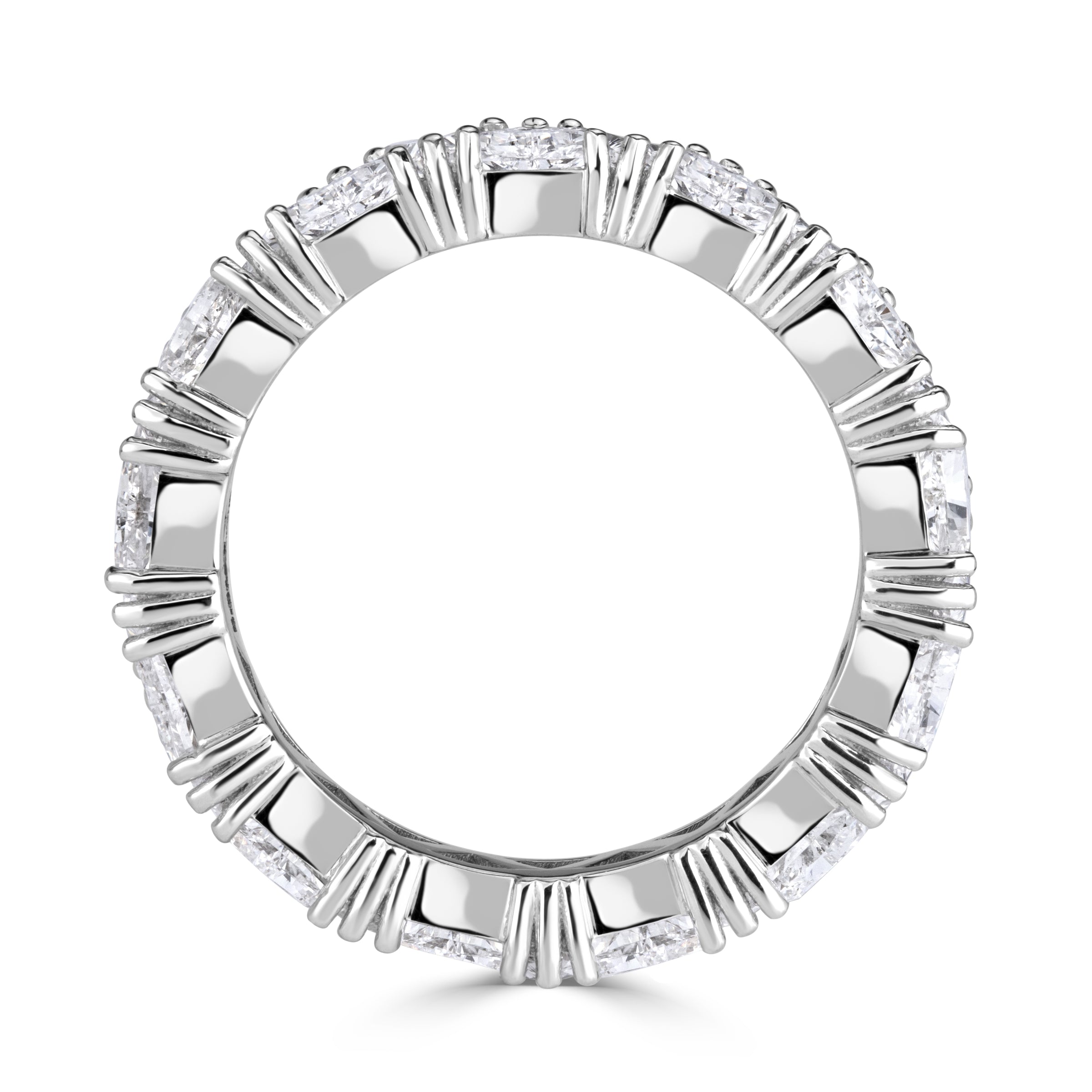 Styled correctly, a 3.81 carats Brilliant White Wedding Band like this can anchor your entire jewelry story. In the day, keep things deliberate and minimal β a single wedding band or eternity ring, a discreet pair of studs and perhaps one bracelet are enough to let the diamonds speak without competition.