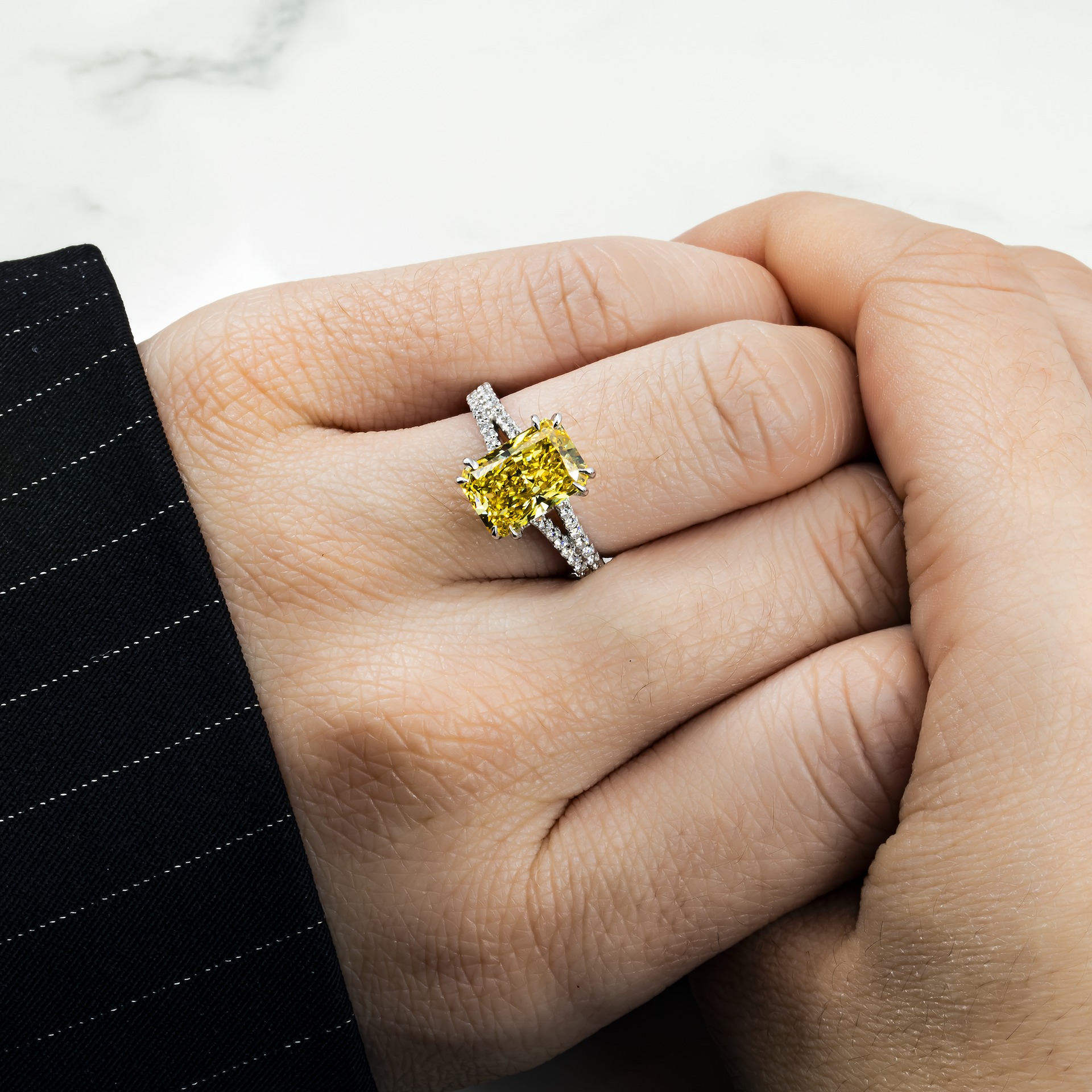 3.83 Carat Radiant Statement | Fancy Yellow | 18K White Gold | Sunlit Royal Radiance