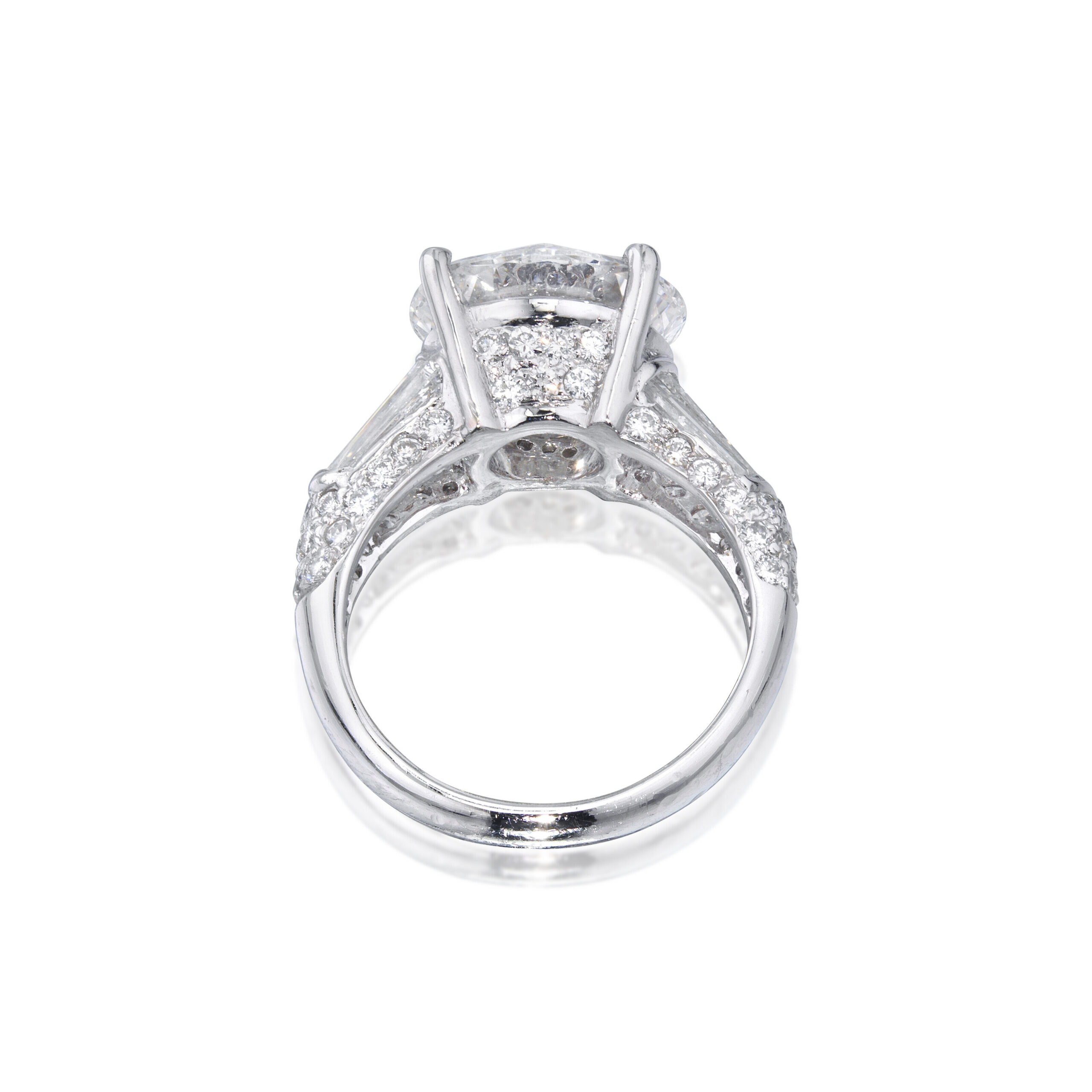 Set with approximately 3.92 carats of diamonds, this design offers a luxurious surface of brilliance that spans the width of the finger. The result is a carat presence that feels deliberate and architectural rather than simply large.