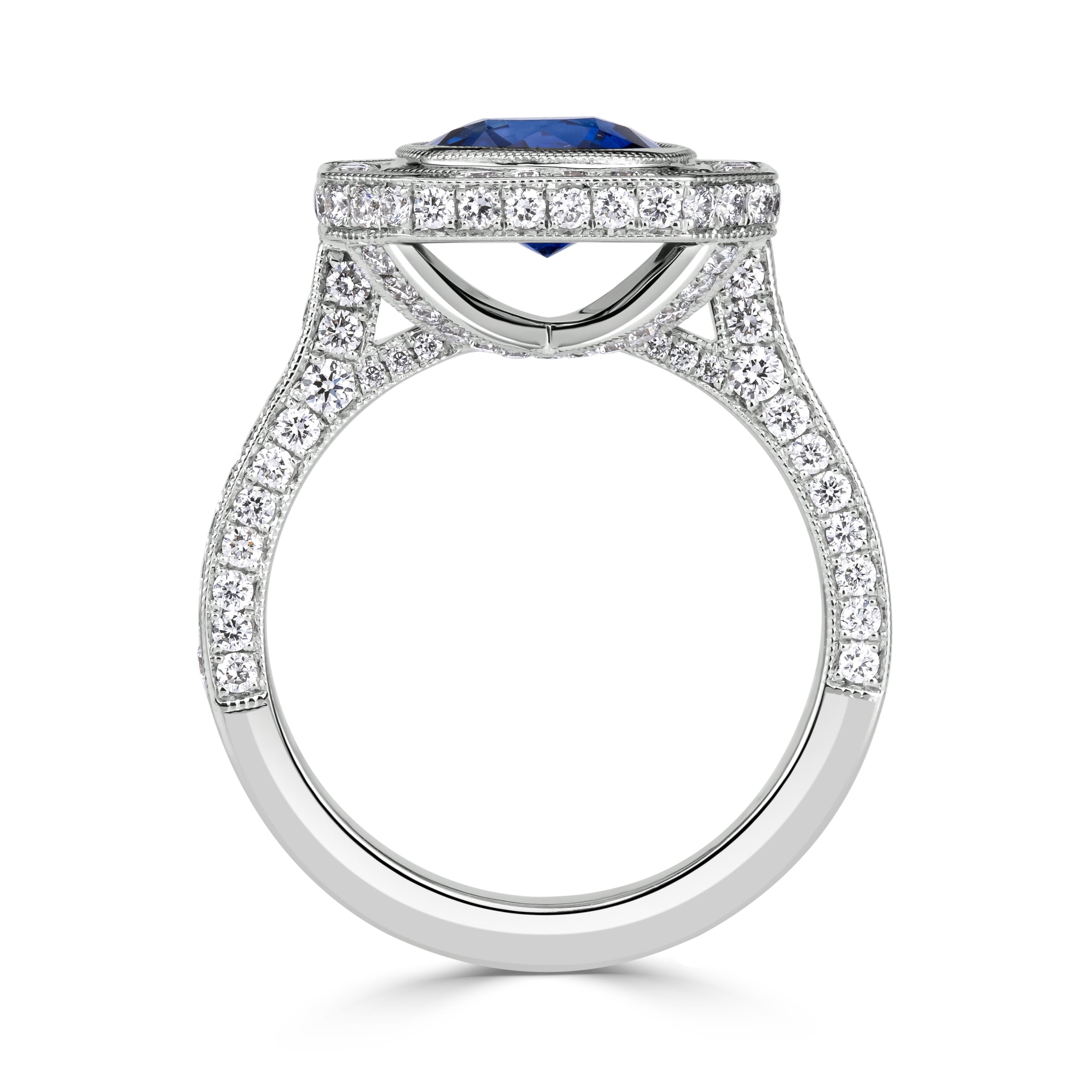 Within a serious vault or safe, this ring tends to sit in a very small circle of priority pieces. The combination of approximately 3 carats of Royal Blue Sapphire diamonds and gemstones and a disciplined Engagement Ring profile makes it easy to justify a place alongside important watches, signed vintage jewels and family heirlooms that rarely leave the safe.