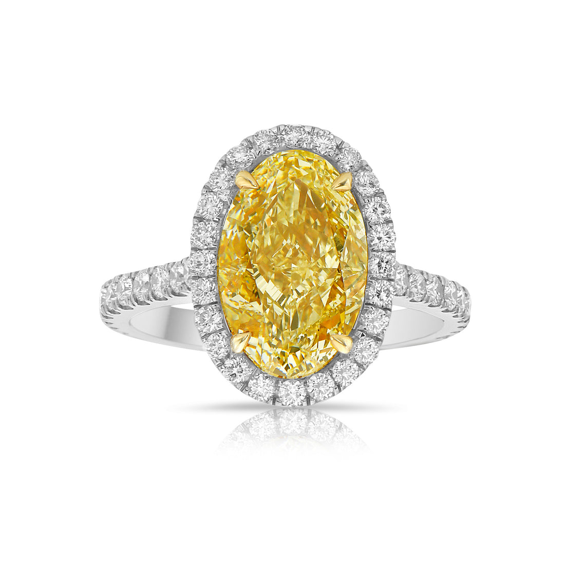 3 Carat Oval Halo Diamond Ring | Fancy Yellow | 14K White Gold | Colour-Collector’s Treasure