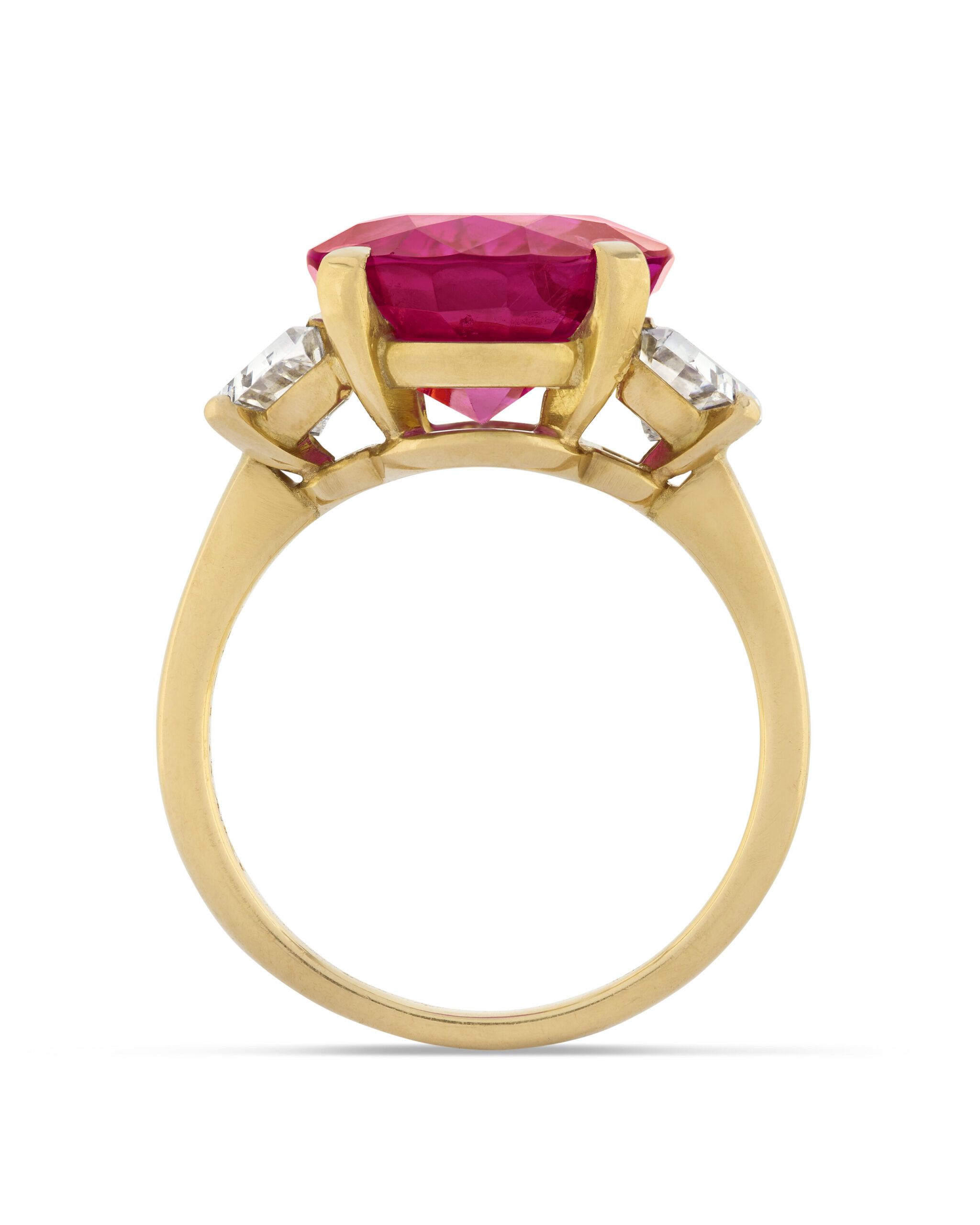 The presence of oval diamonds in this Ruby Red palette gives the ring a calm, confident radiance that transcends trend and season.