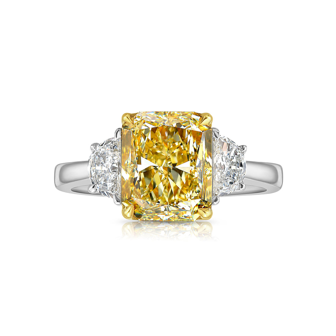 3 Carat Radiant Diamond Ring | Fancy Yellow | 14K White Gold | A Crown-Worthy Fancy Rarity